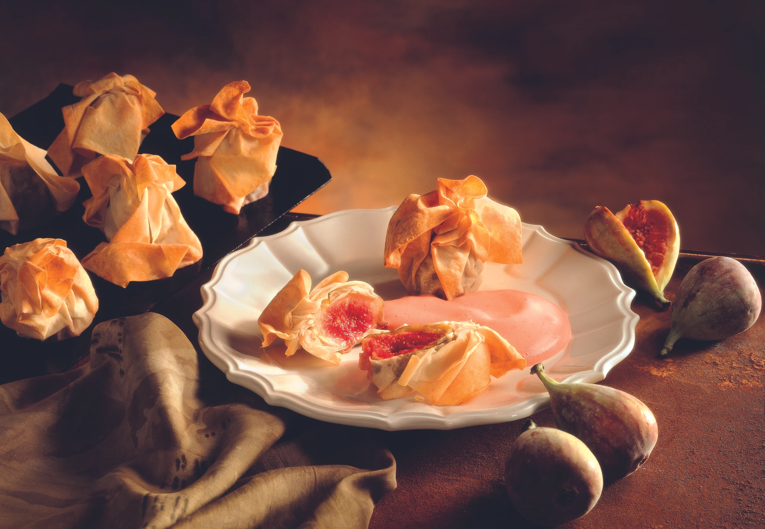 Feigen im Strudelblatt mit Rotwein-Sabayon