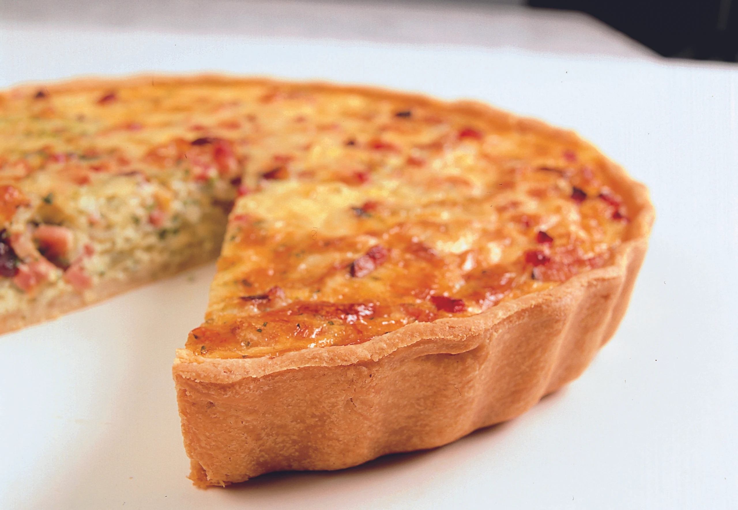Feiner Zwiebelkuchen mit Schinken und Speck
