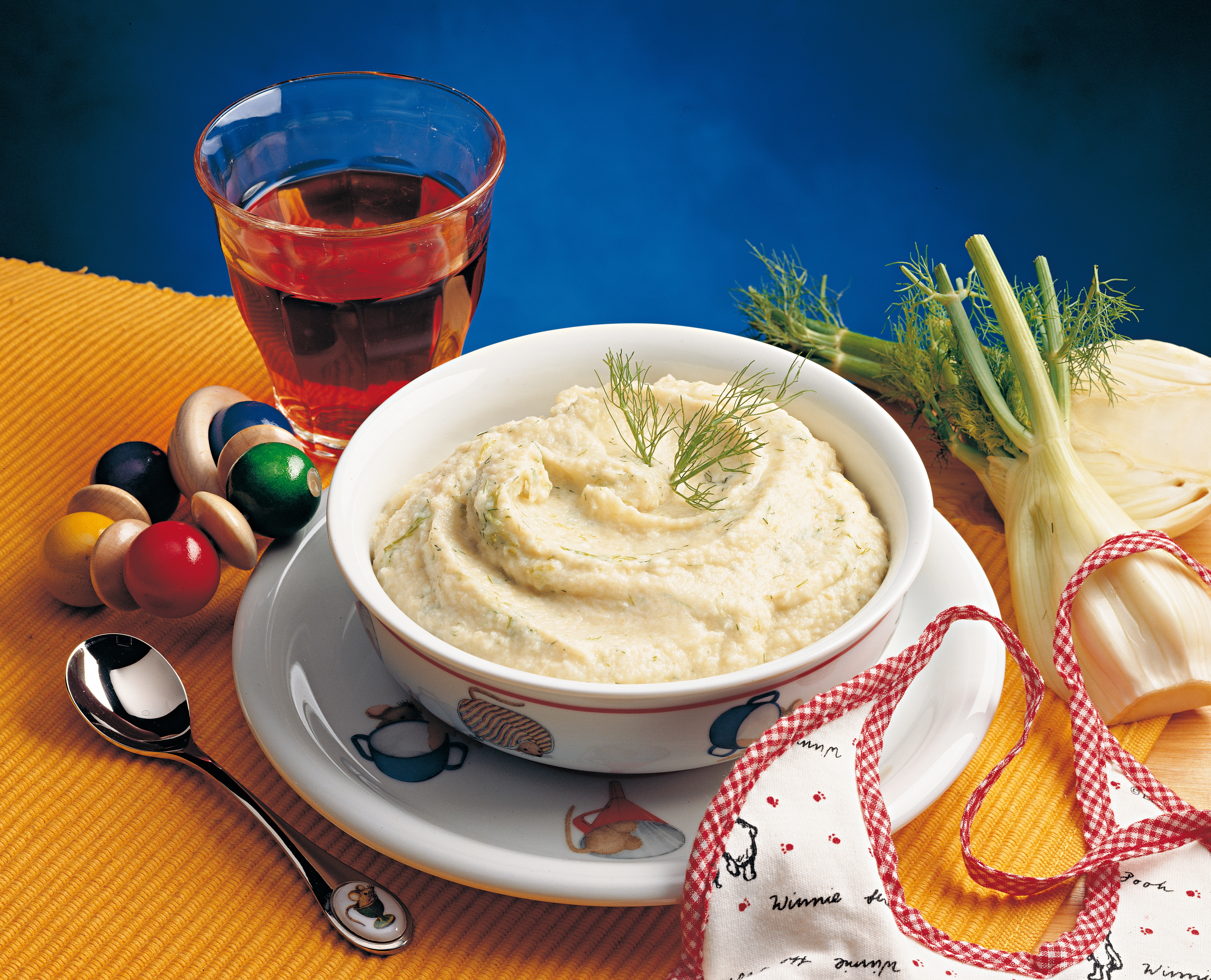 Gemüse fein pürieren, restliche Butter einrühren und mit wenig Zitronensaft würzen. Fenchelgrün grob hacken und unter das Püree mischen.