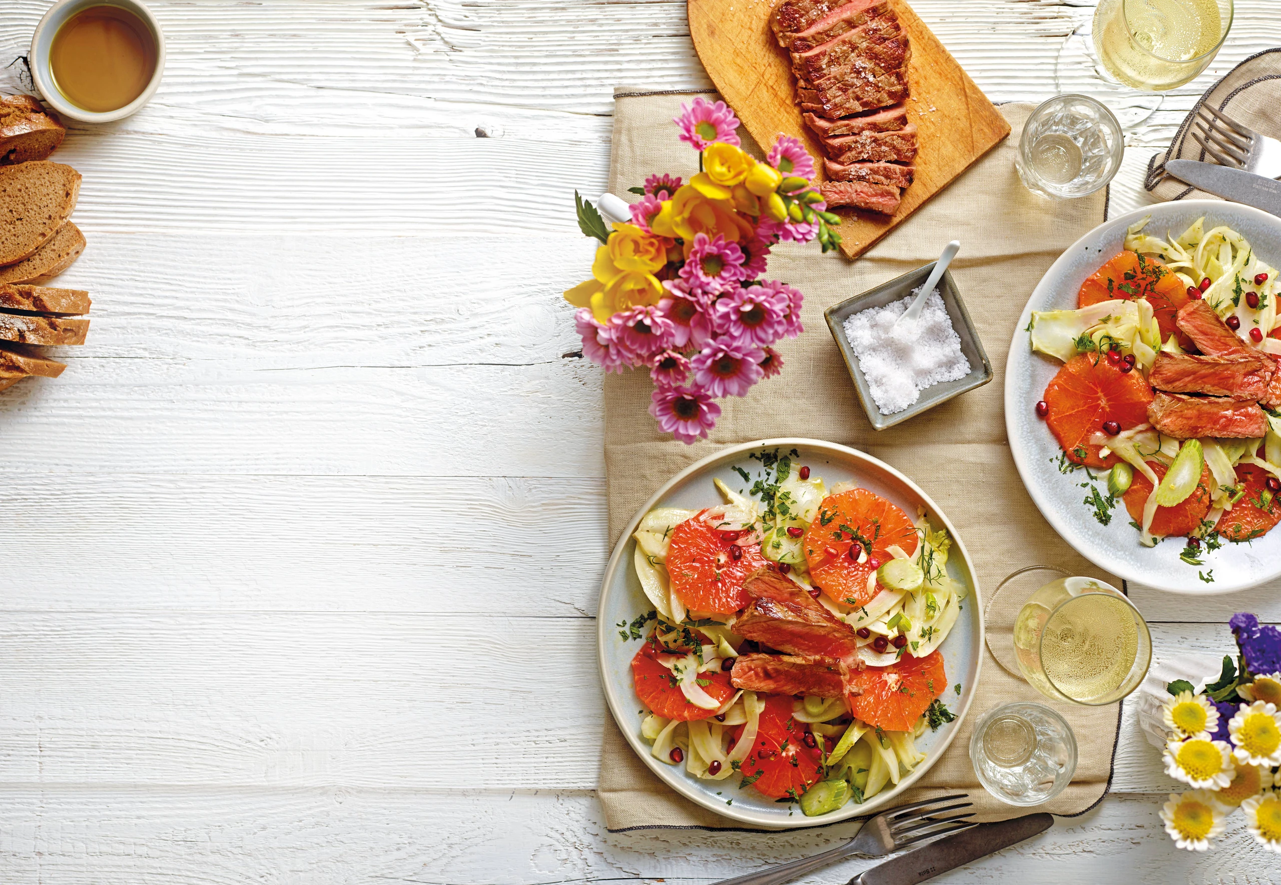Fenchelsalat mit rosa Grapefruit und Tagliata