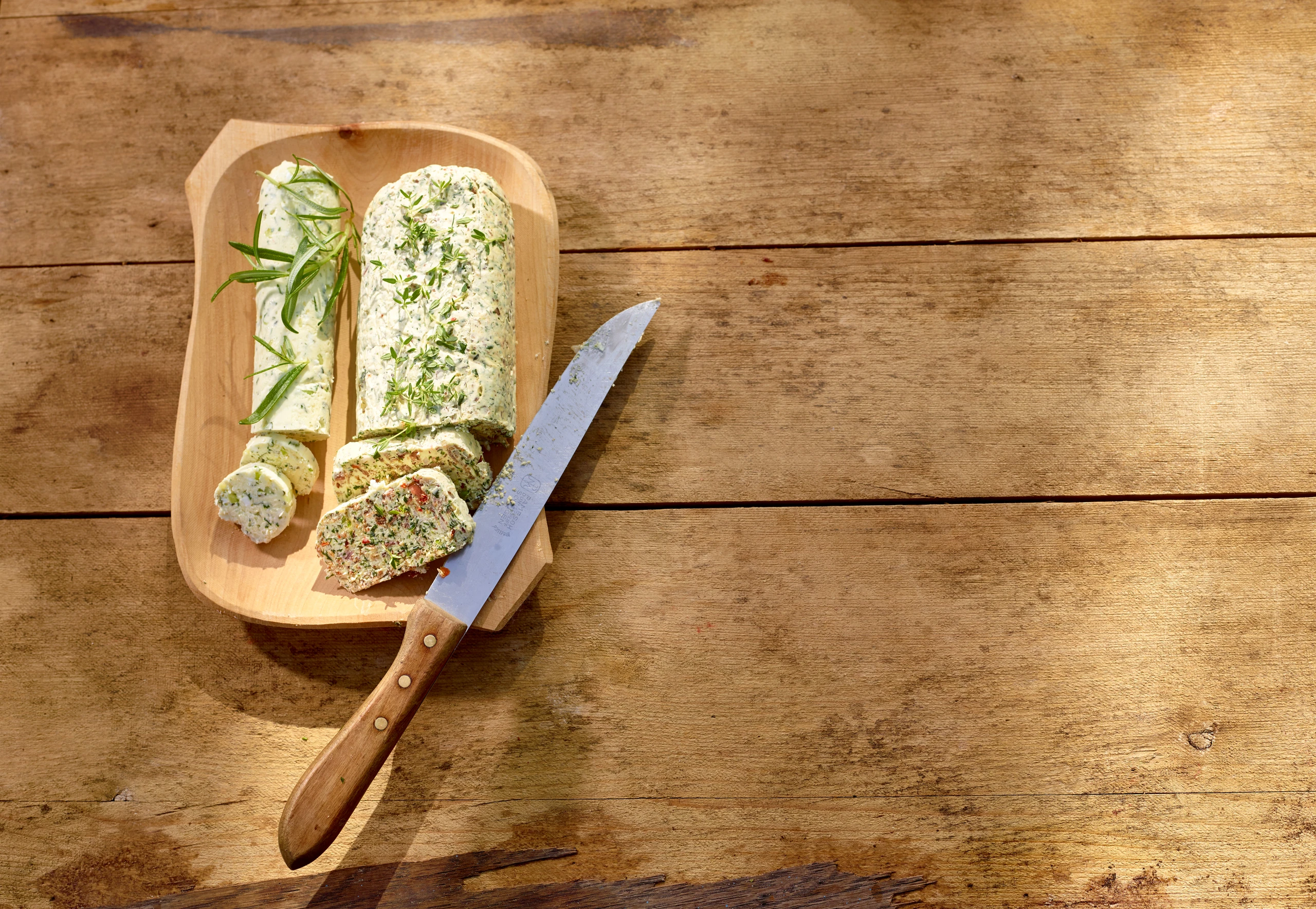Butter in einen Dressiersack (ohne Tülle) füllen, auf ein Stück Backpapier dressieren, darin einrollen und zum Festwerden für ca. 5 Stunden in den Kühlschrank stellen.
