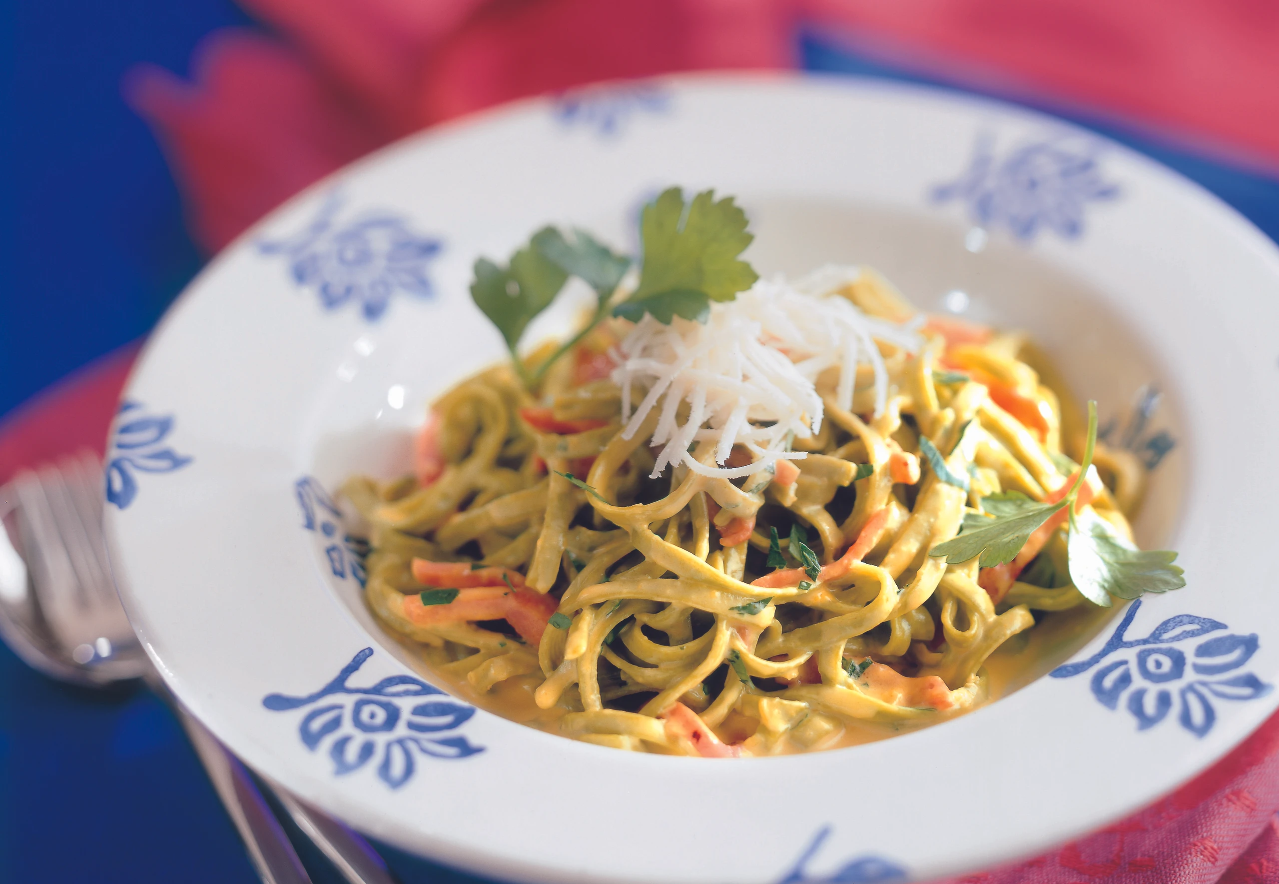 Fettuccine mit Safransauce und Schinken