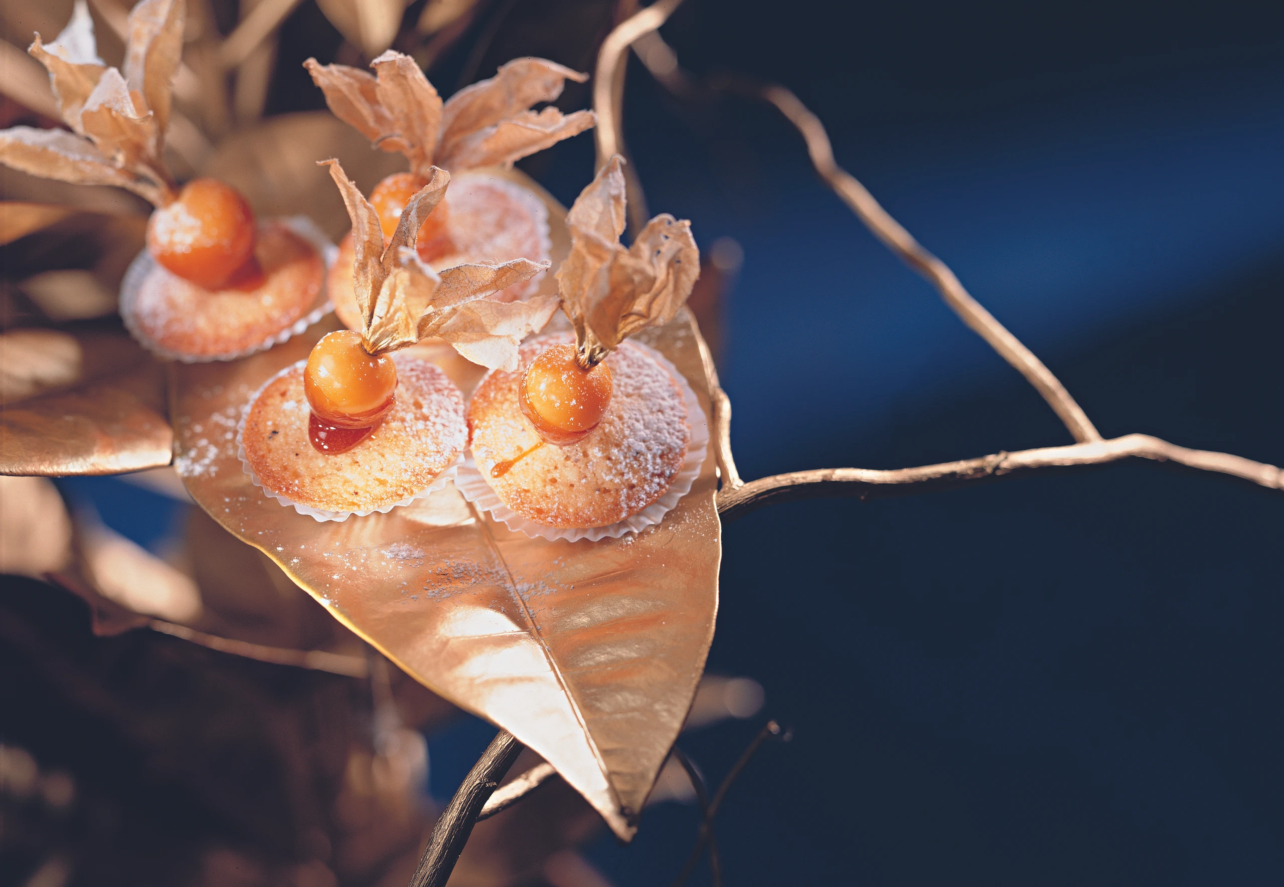 Masse in einen Dressiersack mit glatter Tülle füllen und ca. drei Viertel hoch in die Förmchen füllen. Törtchen im vorgeheizten Rohr (mittlere Schiene) ca. 10 Minuten goldgelb backen. Törtchen aus dem Rohr nehmen, aus den Förmchen stürzen und in Papiermanschetten setzen.
