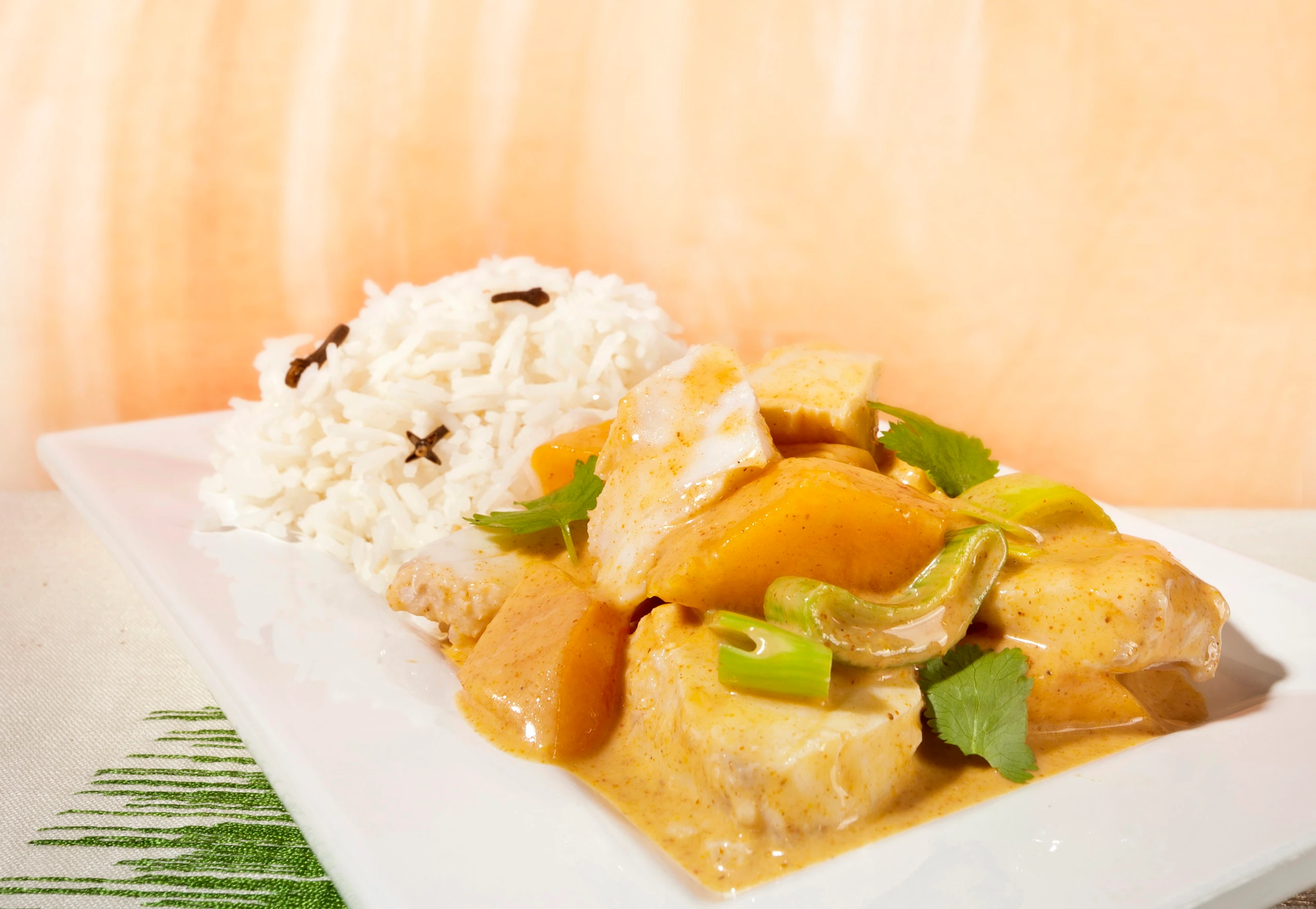 Fischcurry mit Kürbis und Gewürzreis