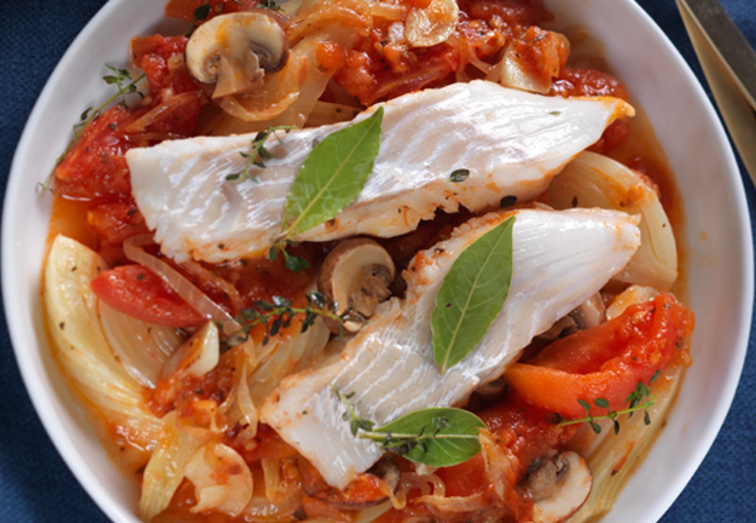 - Fischfilets salzen und auf das Gemüse legen, zugedeckt ca. 5 Minuten dünsten. Gemüse mit dem Fisch anrichten.