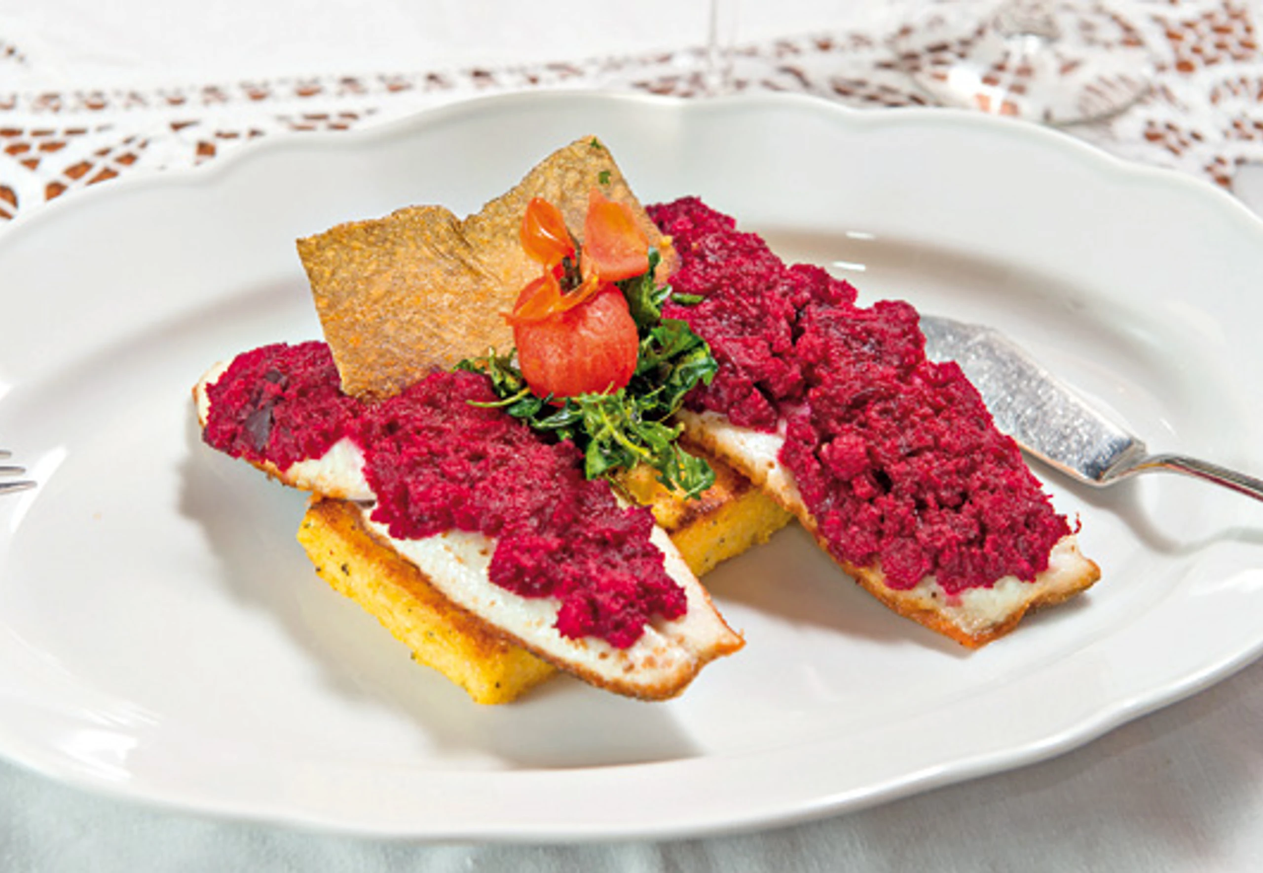 - Rohr auf 220°C vorheizen. Backblech mit Backpapier belegen. Fischfilets salzen, pfeffern, in Öl (Hautseite nach unten) scharf anbraten, auf das Blech geben, mit Krenmasse bestreichen und im Rohr (mittlere Schiene) fertig backen (ca. 5 Minuten). Polenta in Rechtecke schneiden, in Öl beidseitig braten und mit dem Fisch anrichten. Filets eventuell mit knuspriger Haut, Paradeisern und Kräutern garnieren.