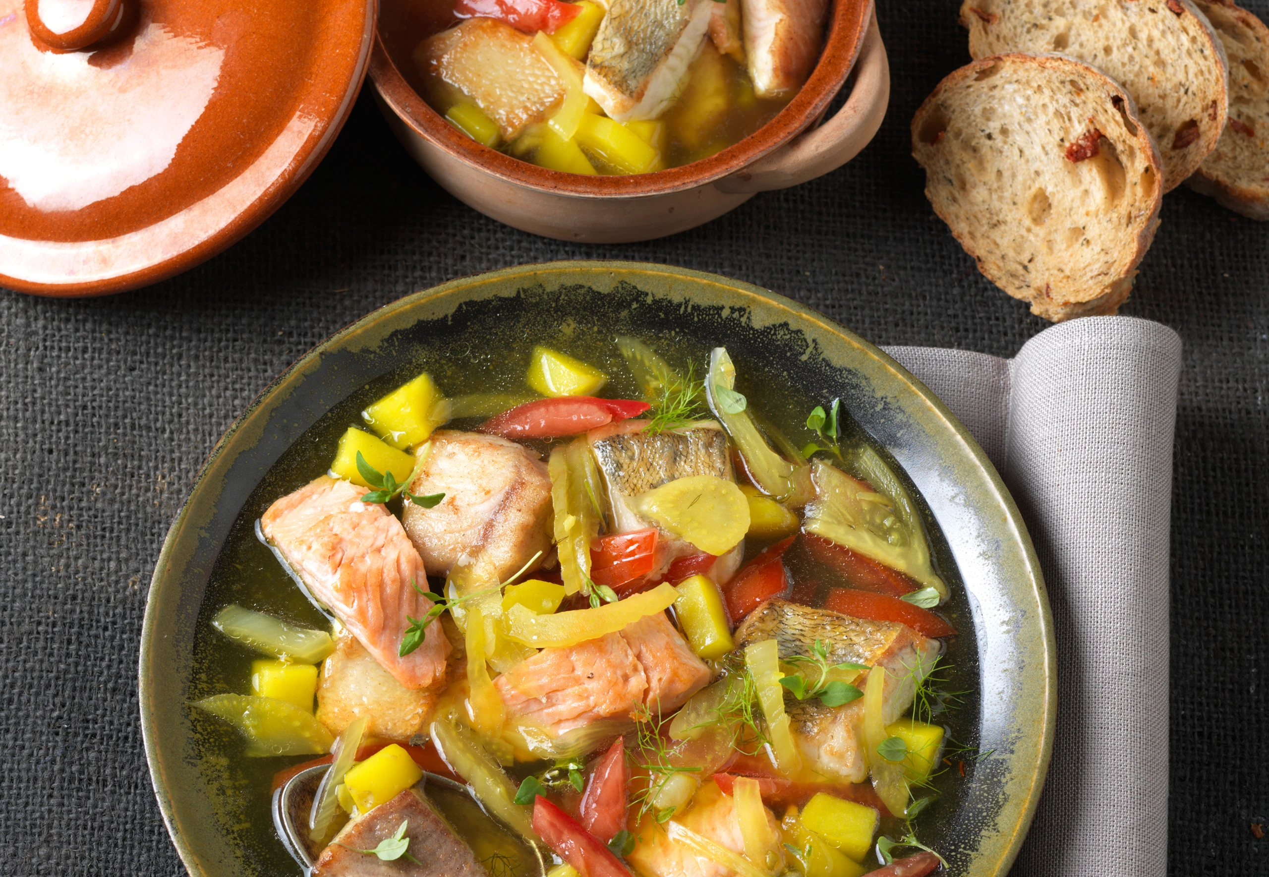 Zwiebel und Knoblauch im Öl anschwitzen und mit Wein ablöschen. Wein einkochen lassen und die Suppe zugießen. Fenchel, Erdäpfel und Safran zugeben. Suppe ca. 20 Minuten köcheln, mit Salz und Pfeffer abschmecken.
