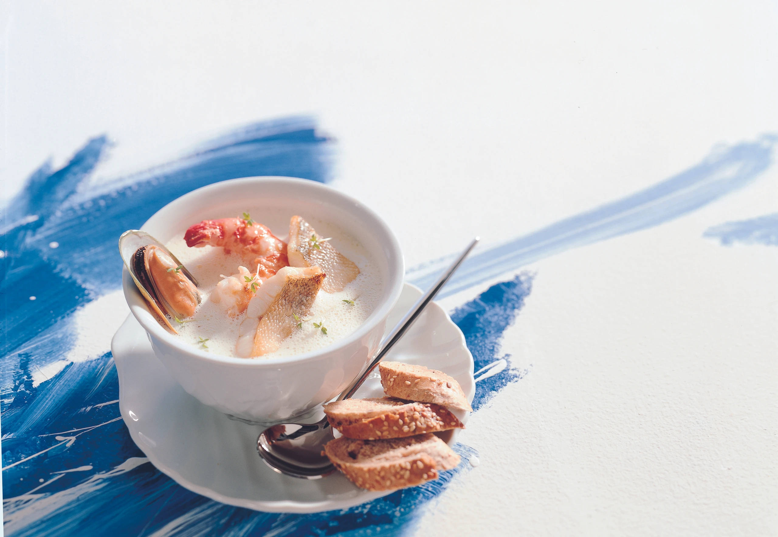 Fischsuppe mit Garnelen und Muscheln