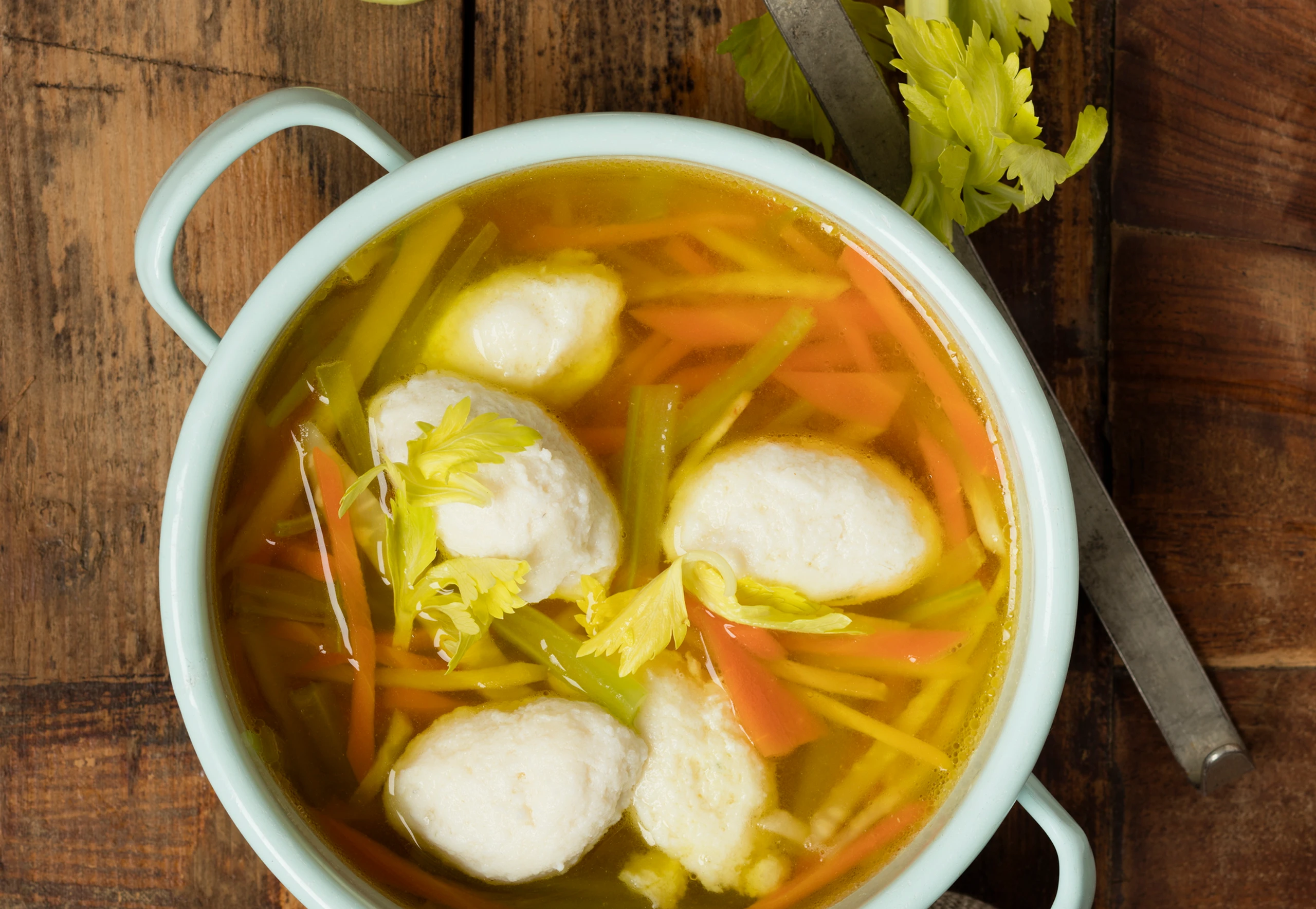 Salzwasser aufkochen. Aus der Mousse Nockerl ausstechen, ins kochende Wasser legen und ca. 10 Minuten garziehen lassen. Fischsuppe mit den Nockerln anrichten und mit Selleriegrün garniert servieren.