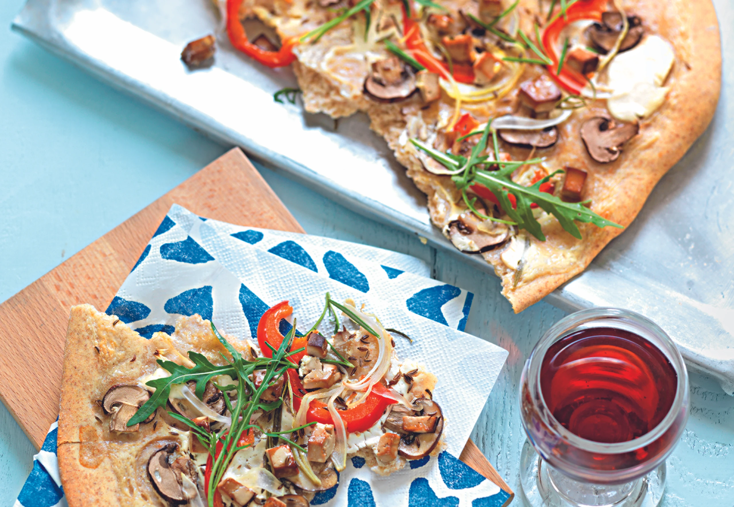 Flammkuchen mit Gemüse, Pilzen und Tofu