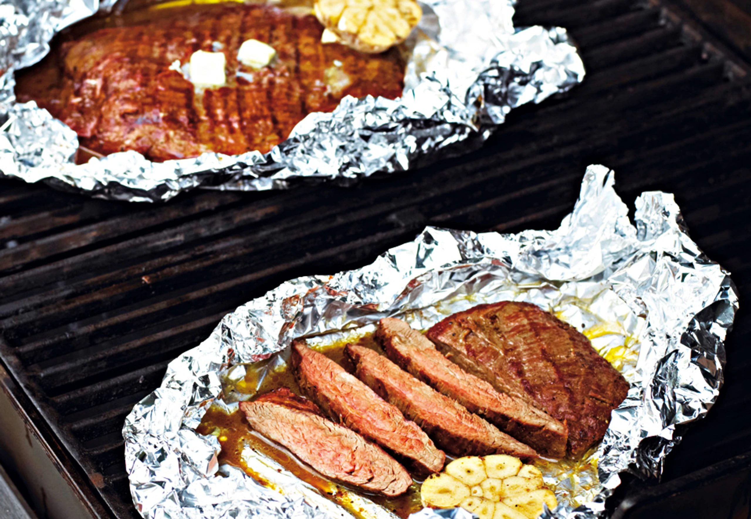 - Knoblauch horizontal durchschneiden. Fleisch mit Knoblauch rundum einreiben, mit 2 EL Butter bestreichen und quer zur Faser in Scheiben schneiden. Fleisch mit dem entstandenen Saft anrichten. Dazu passt Erdäpfelgratin und gegrilltes Gemüse.