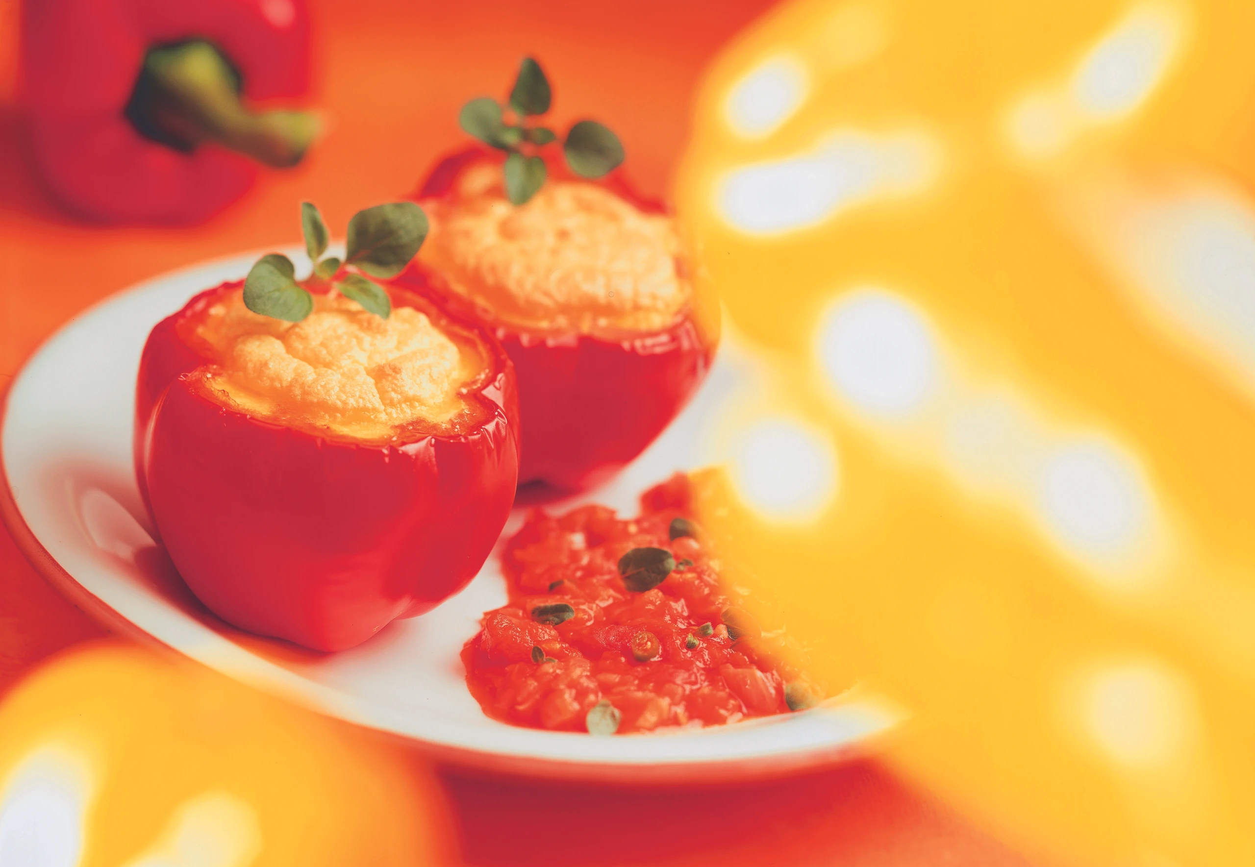 Flaumige Schafkäse-Paprika mit Paradeissauce