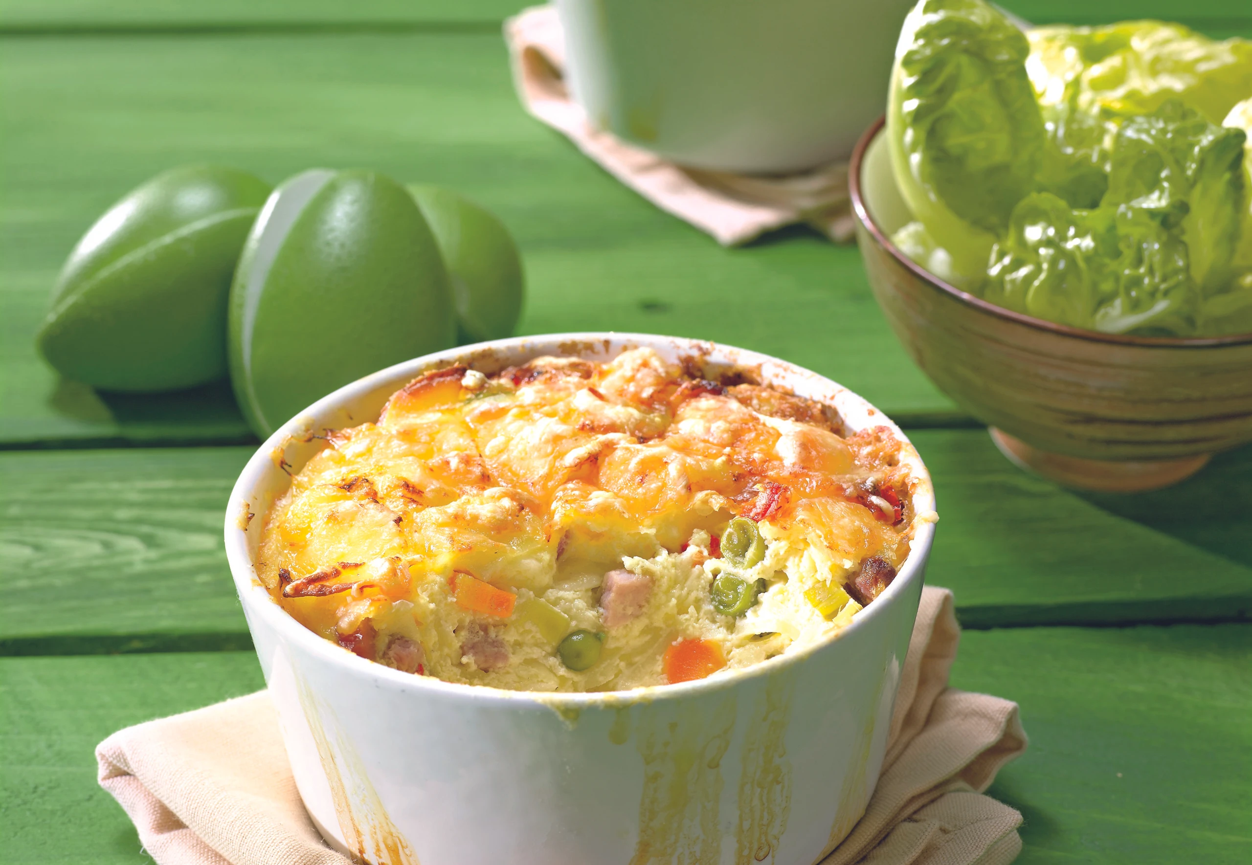 Fleckerlauflauf mit Geselchtem und Gemüse