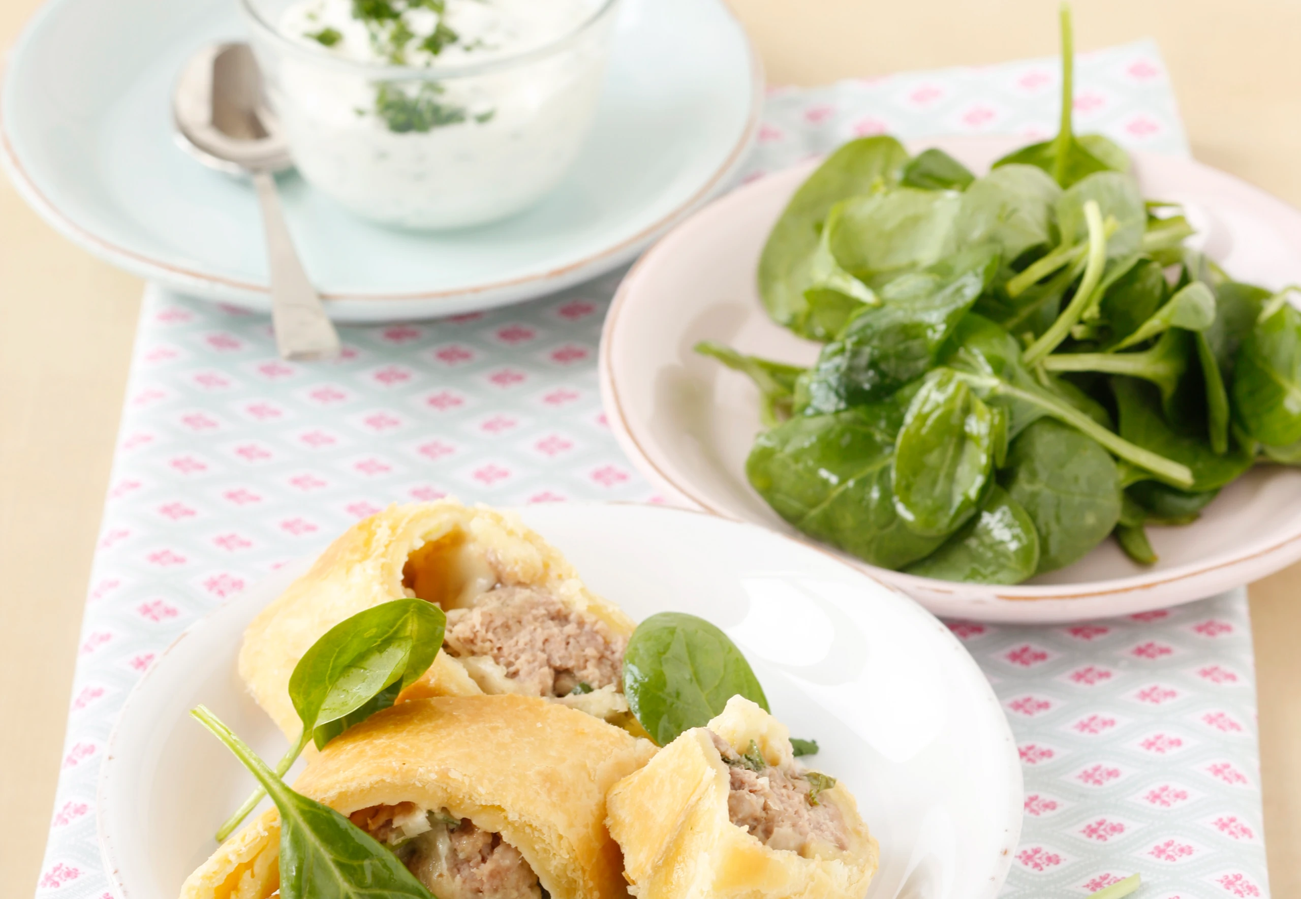 Fleisch-Mozzarellastrudel mit Kräutersauce