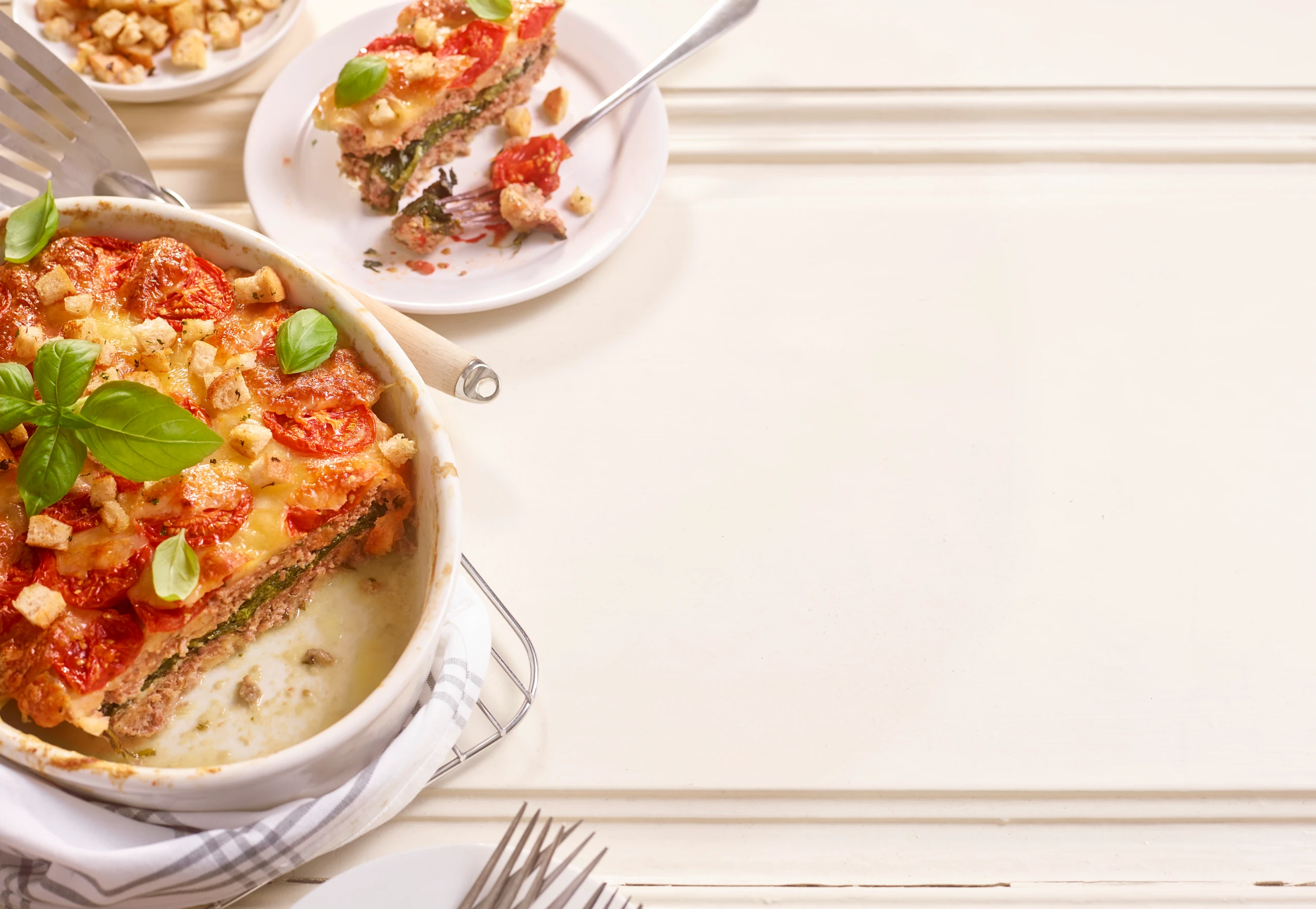 Fleisch-Spinatauflauf mit Mozzarella und Paradeisern