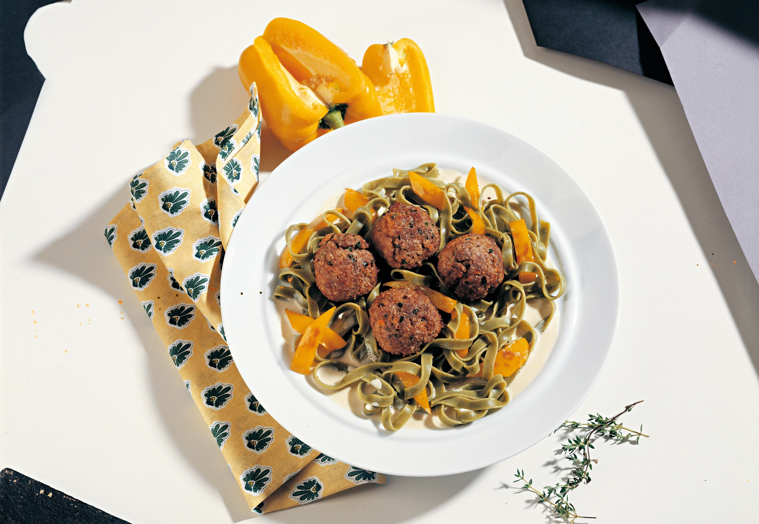 Stärkemehl mit einigen Tropfen Wasser mischen und in die Sauce rühren. Sauce nochmals kurz aufkochen und mit Salz, Pfeffer und wenig Zitronensaft würzen. Fleischbällchen mit der Sauce anrichten und eventuell mit Petersilie garnieren. Dazu passen Nudeln und Paprikagemüse.