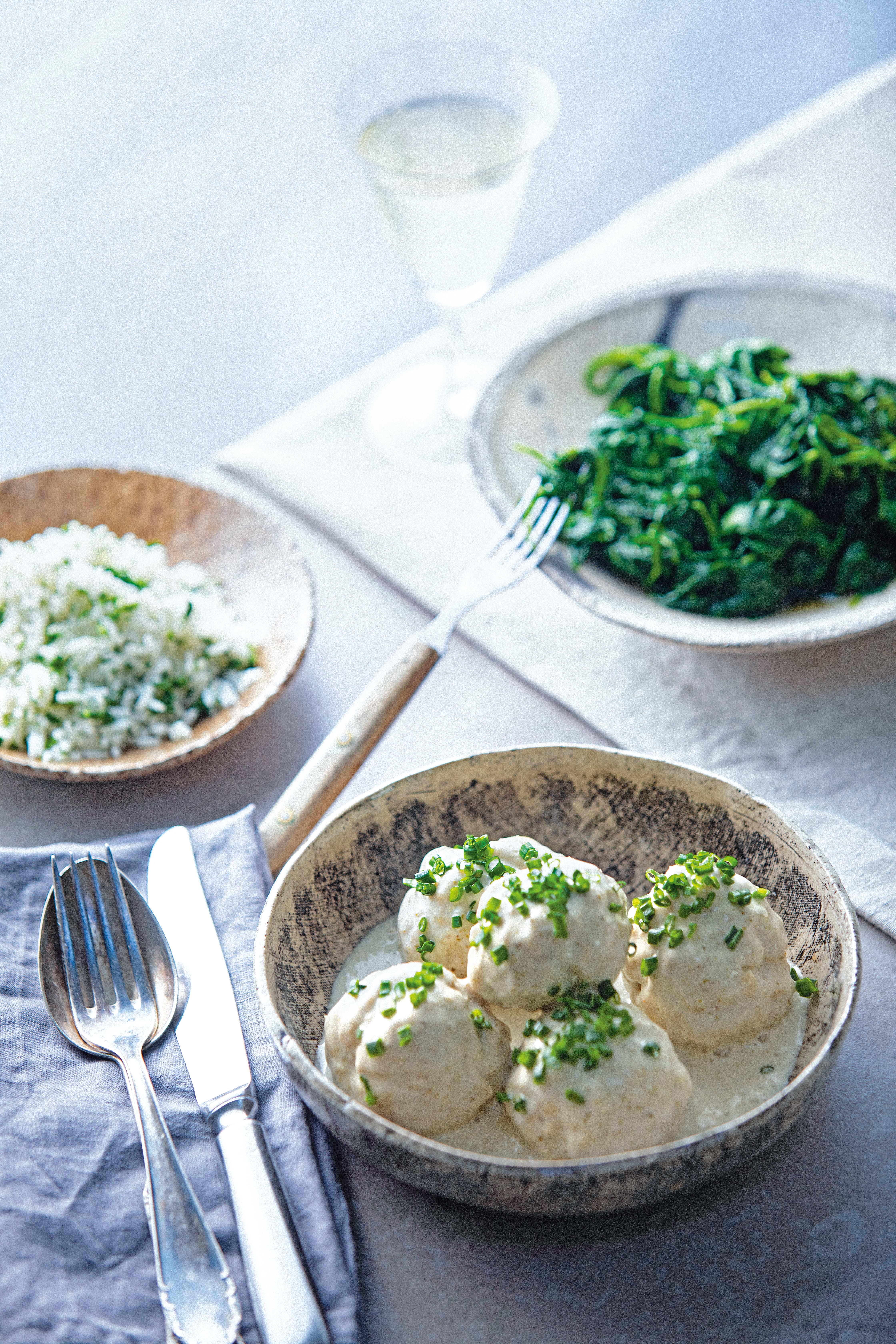 Fleischbällchen mit Kapernsauce und Blattspinat