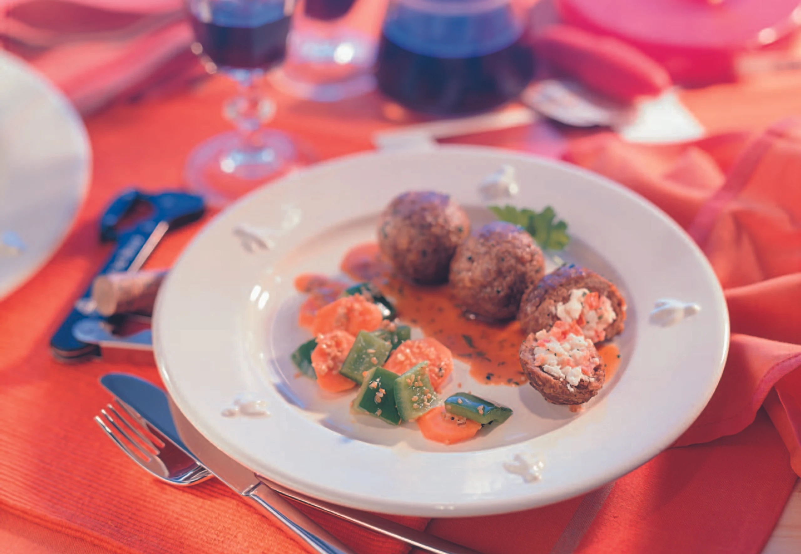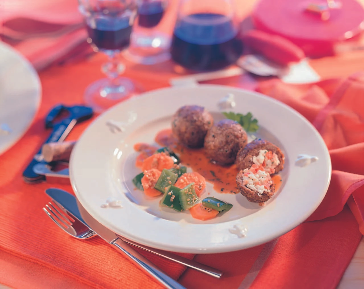 Fleischbällchen mit Schafkäse und Paradeisern gefüllt