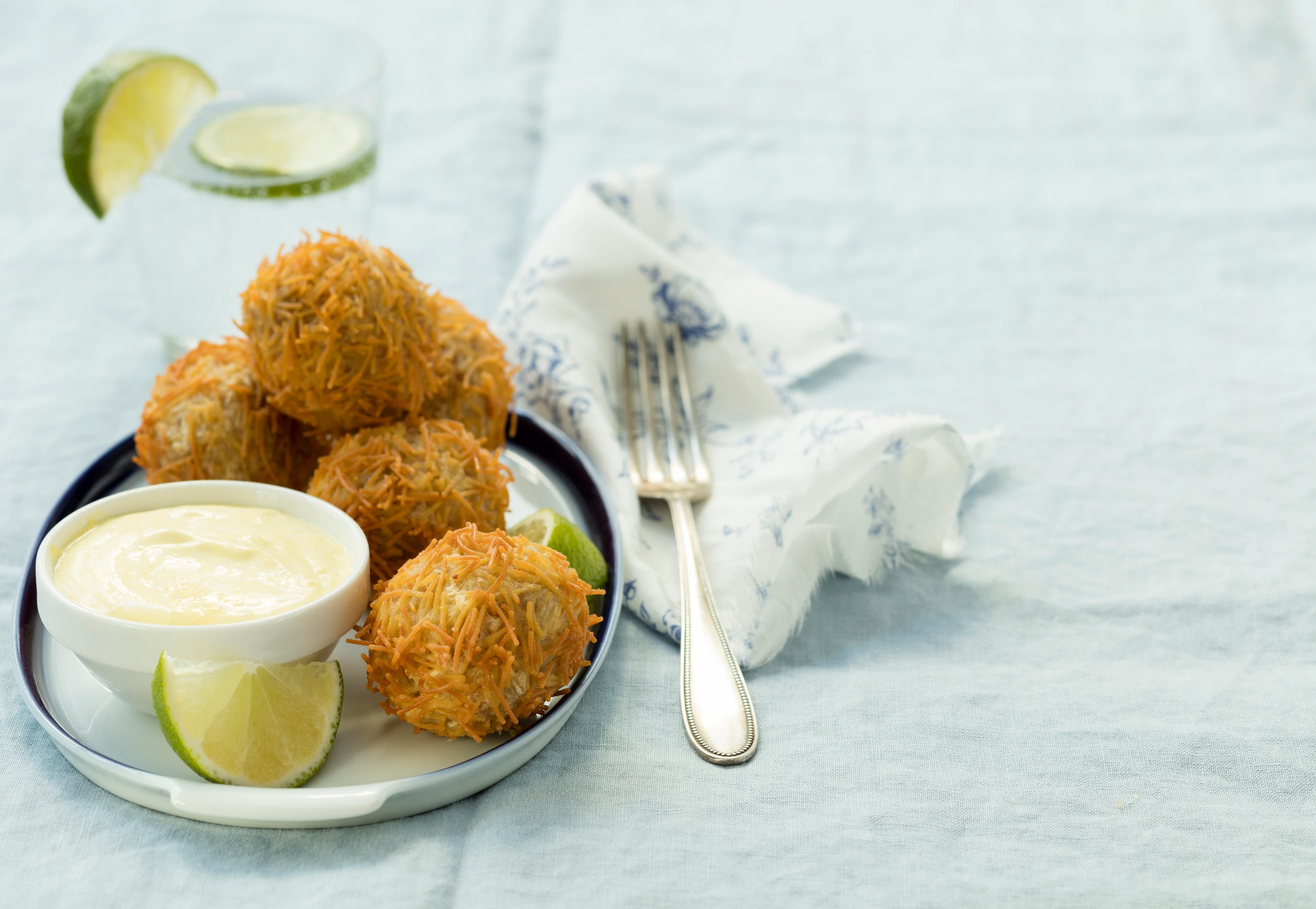 Ca. Finger hoch Öl erhitzen, Fleischbällchen darin goldgelb backen. Bällchen mit einem Siebschöpfer herausheben, auf Küchenpapier abtropfen lassen und mit der Sauce servieren.