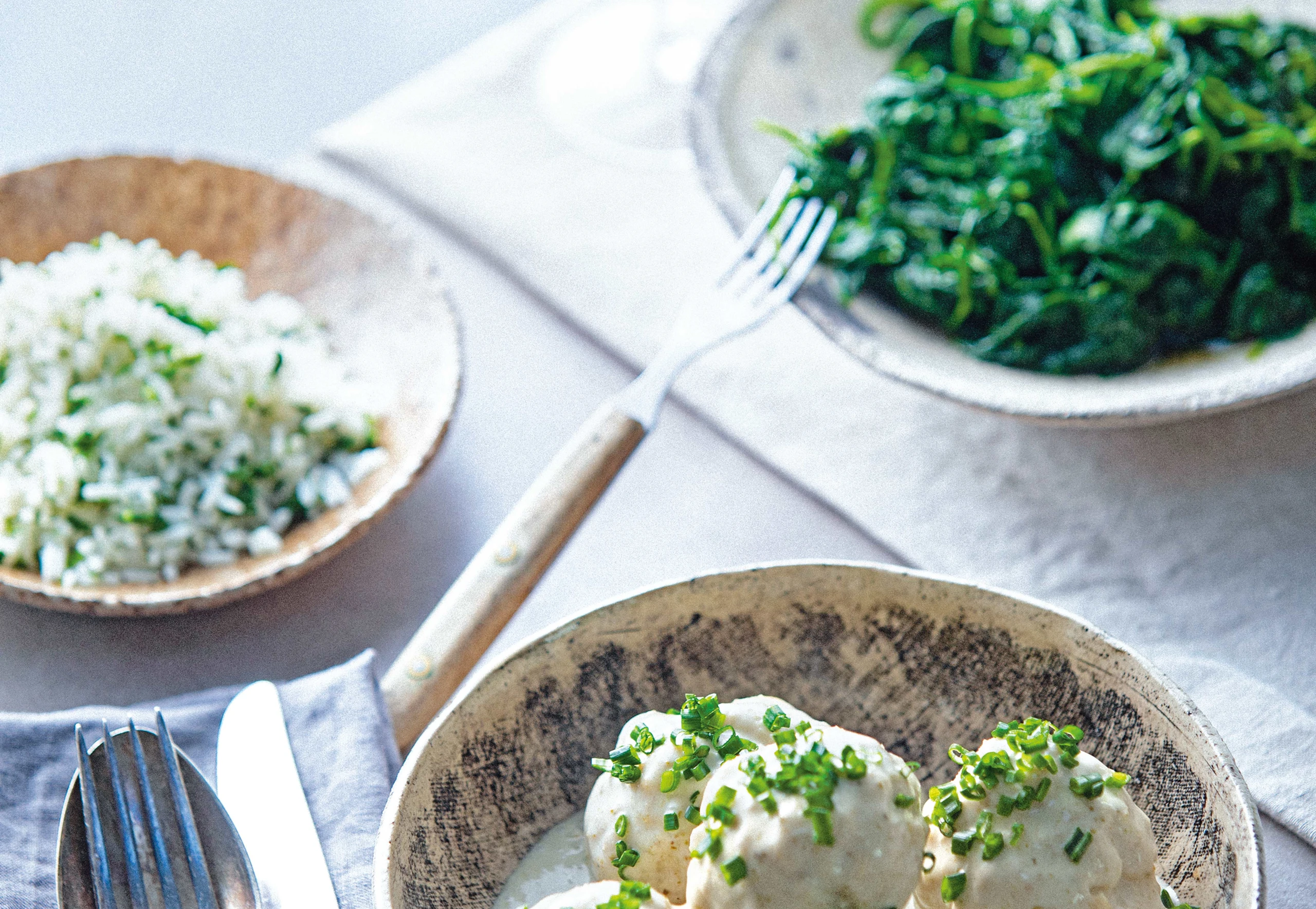- Fleischbällchen mit der Topfen-Avocadocreme anrichten. Dazu passt Reis.