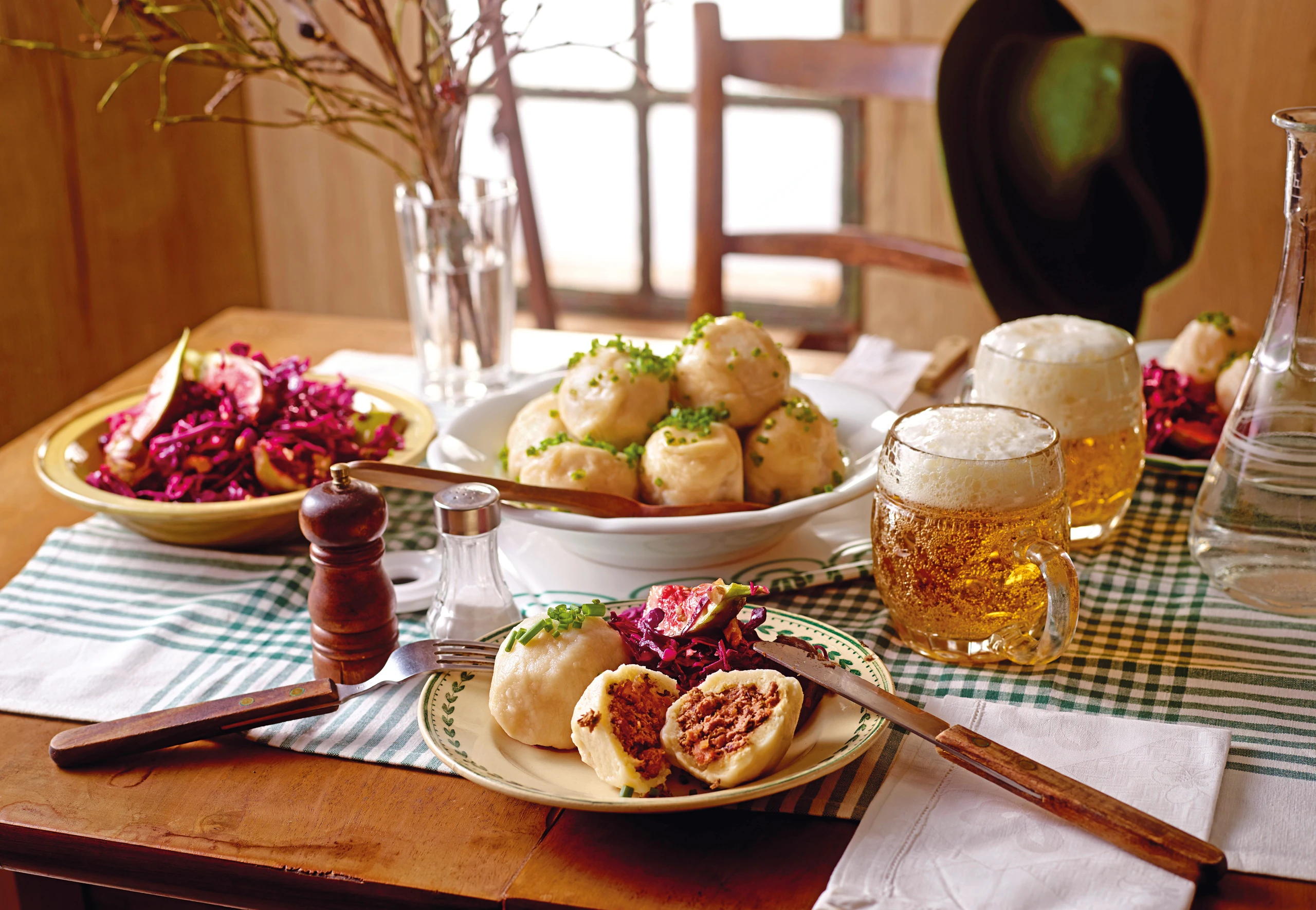 Fleischknödel mit Rotkraut-Feigensalat