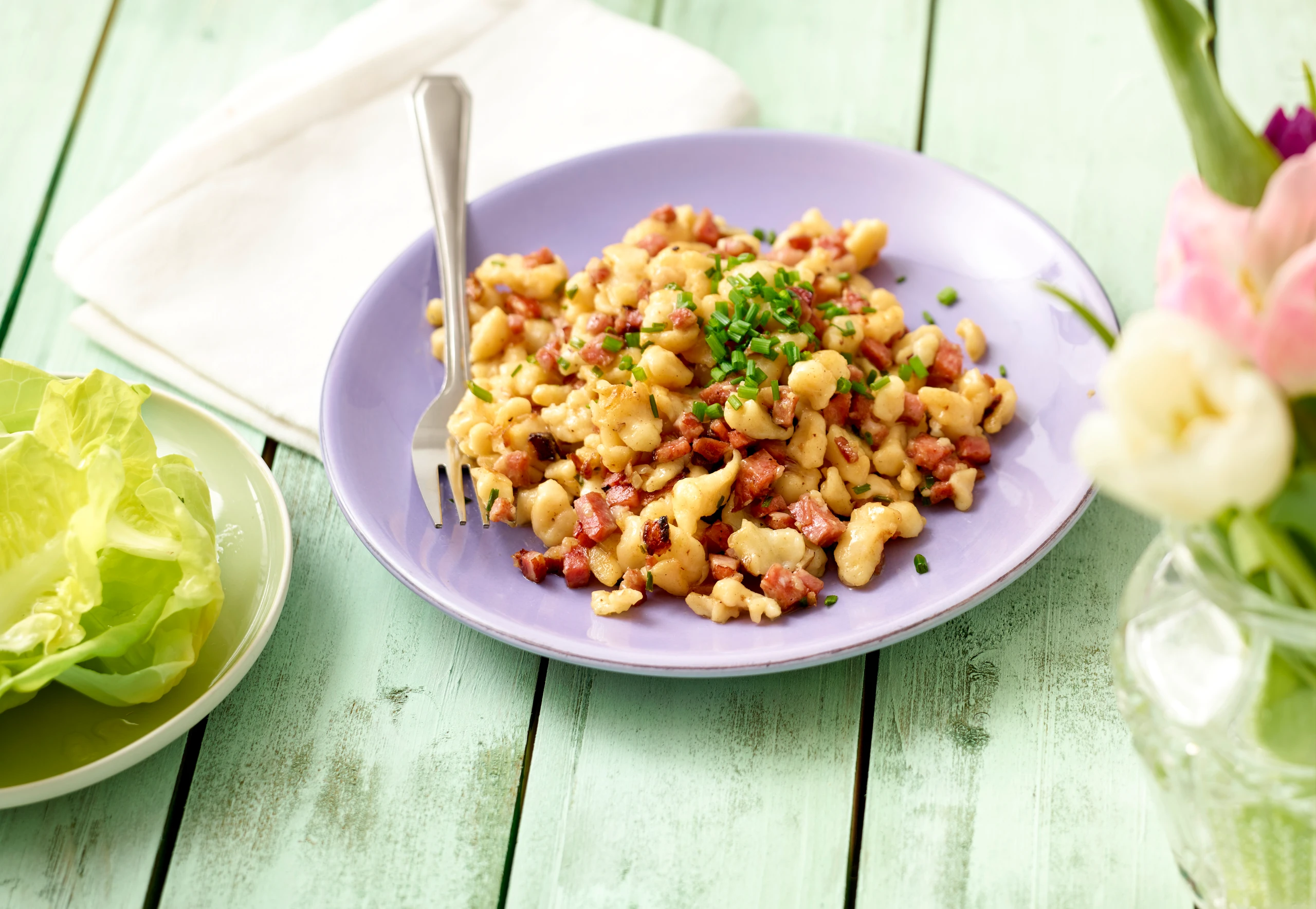 Nockerl in eine Auflaufform füllen, gleichmäßig verteilen und im Rohr (mittlere Schiene / Gitterost) überbacken. Schnittlauch fein schneiden und vor dem Servieren über die Nockerl streuen. Dazu passt Blattsalat.