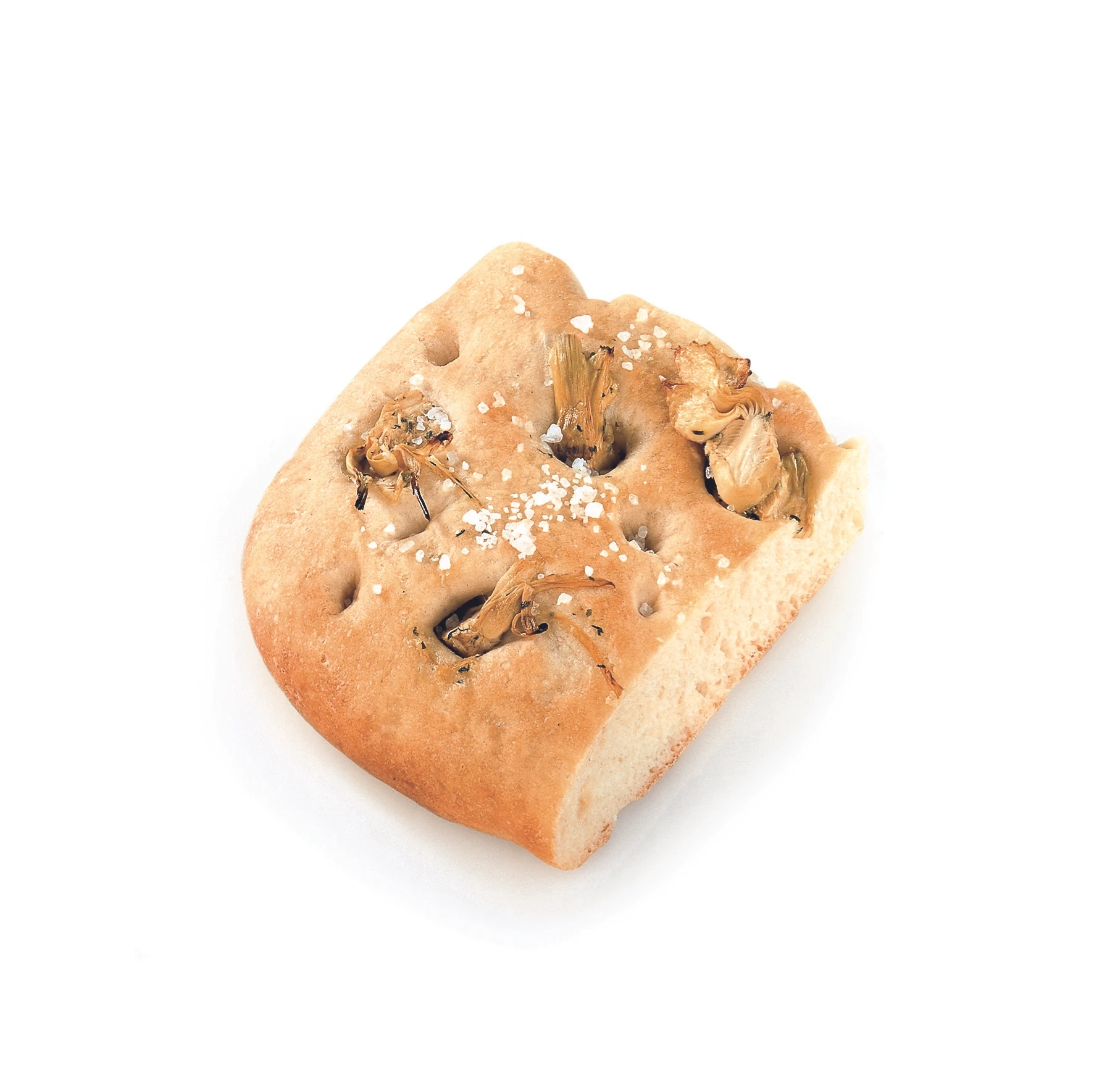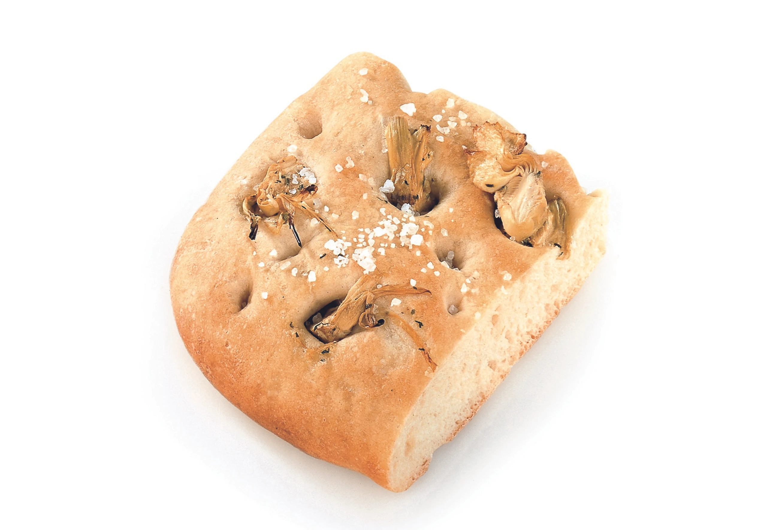 Teig zubereiten (siehe Grundrezept). Teig auf Backblechgröße ausziehen, mit den Fingern Löcher eindrücken. Artischocken darauf legen. Teig gehen lassen.
