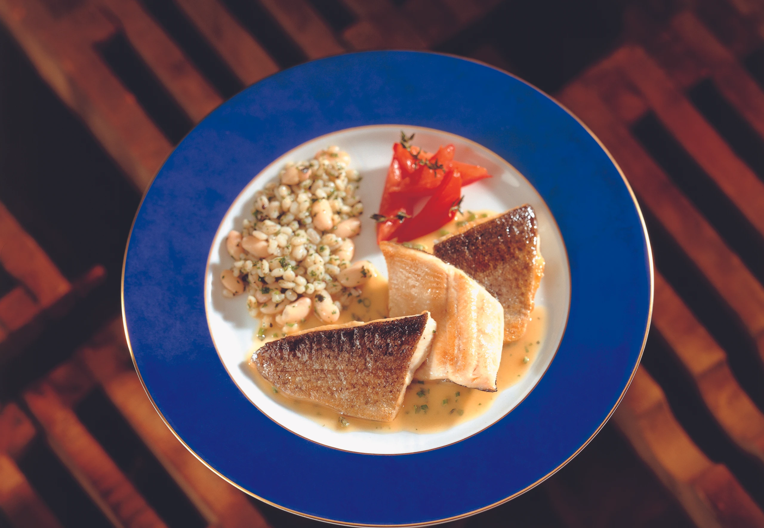 Forellenfilet mit Bohnen-Rollgersten-Gemüse