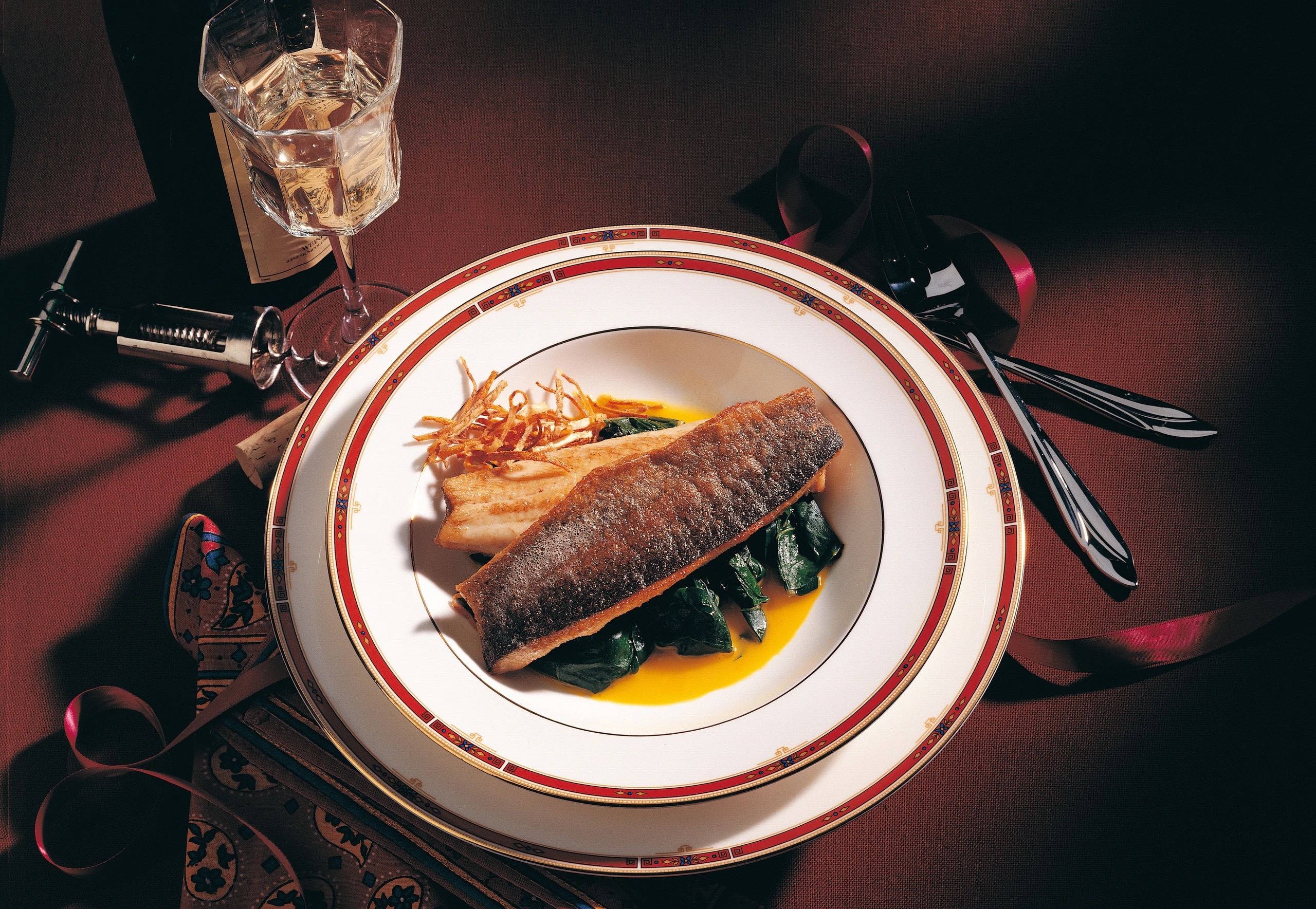 Fischfilets am besten in tiefen Tellern mit der Sauce anrichten. Als Beilagen passen Mangold-Gemüse und Reis.