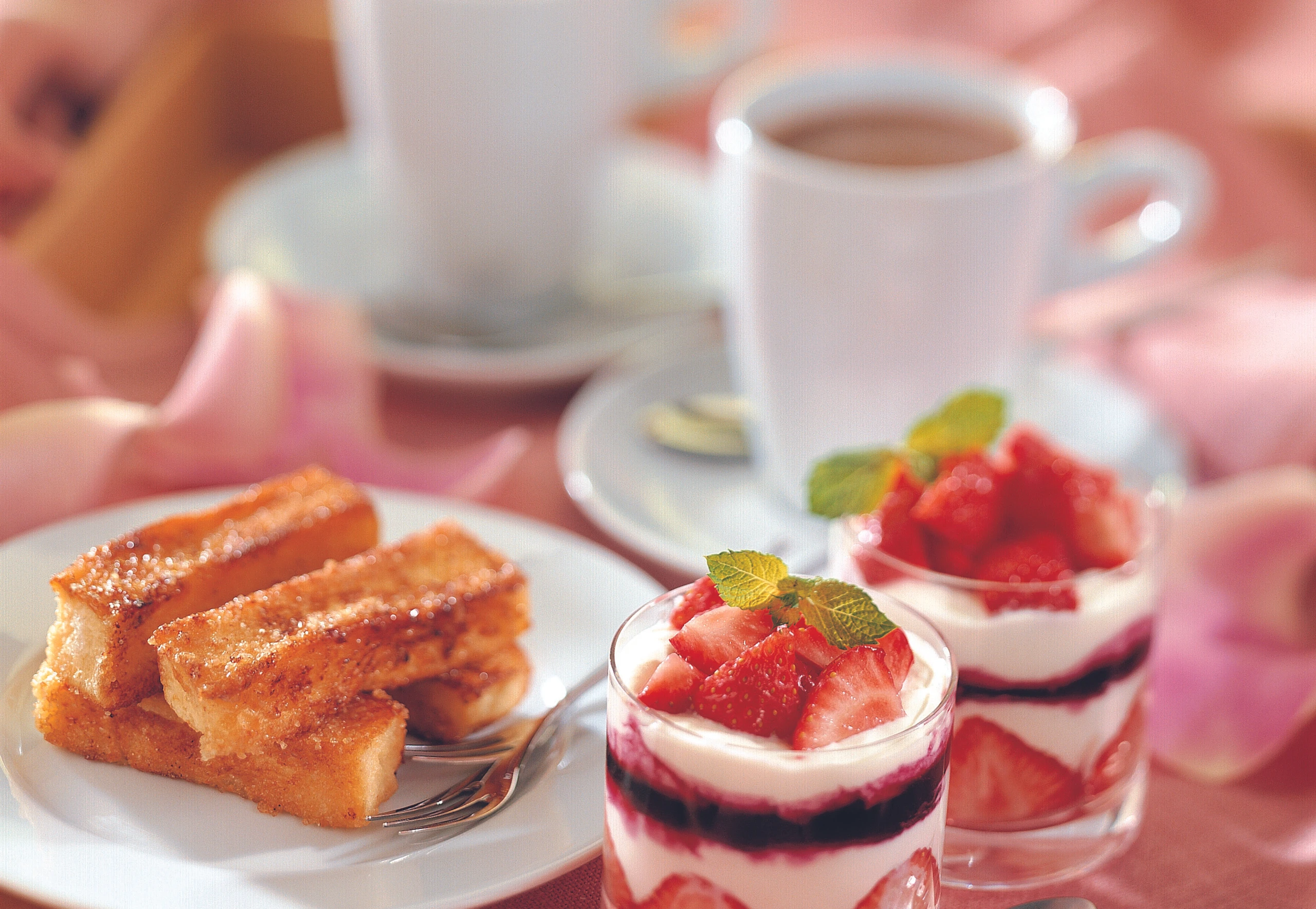 Rohr auf 160°C vorheizen. Brioche kurz in die Eimischung tauchen und im Zucker wälzen. Butter erhitzen, Brioche darin rundum goldbraun braten. Im Rohr (mittlere Schiene / Gitterrost) 10 Minuten ziehen lassen. Vor dem Anrichten auf Küchenpapier abtropfen lassen.
