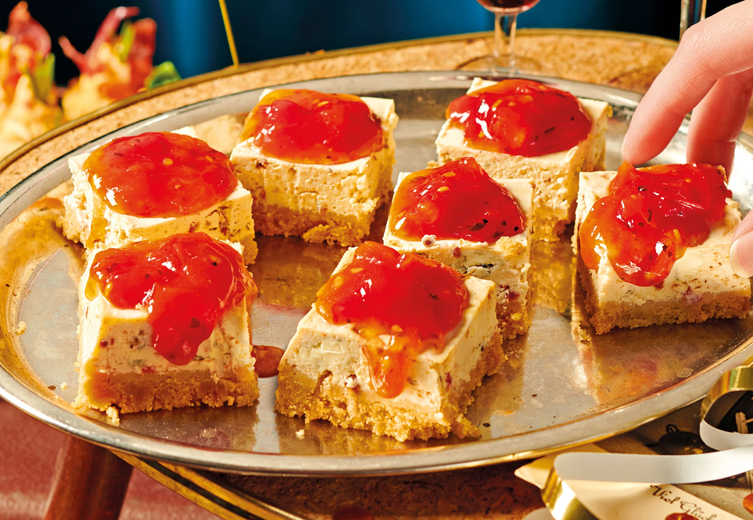 Frischkäse-Dolcelatte-Würfel mit Paradeisermarmelade