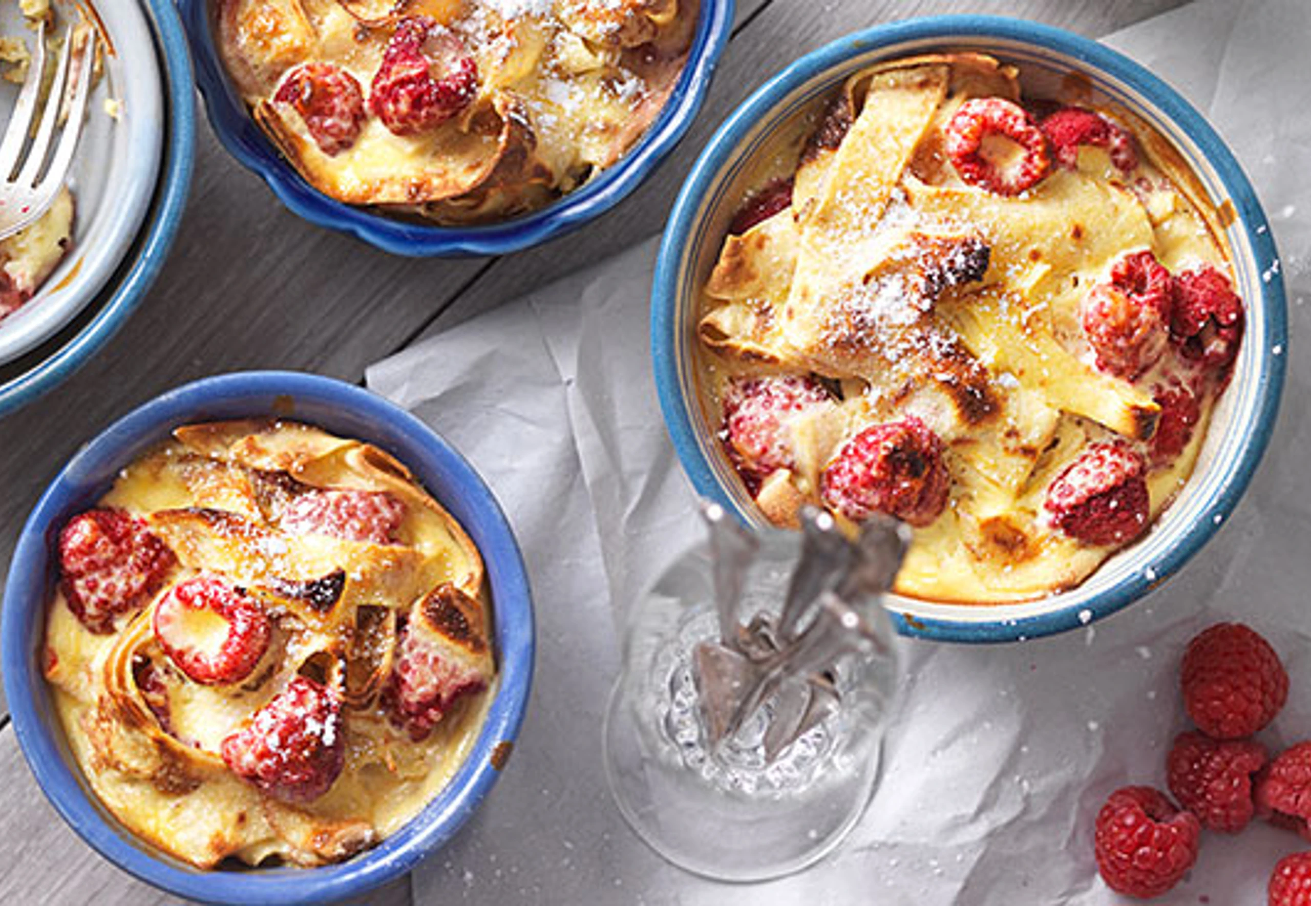 Aufläufe im Rohr (mittlere Schiene / Gitterrost) ca. 30 Minuten backen. Aufläufe aus dem Rohr nehmen und mit Staubzucker bestreut servieren.