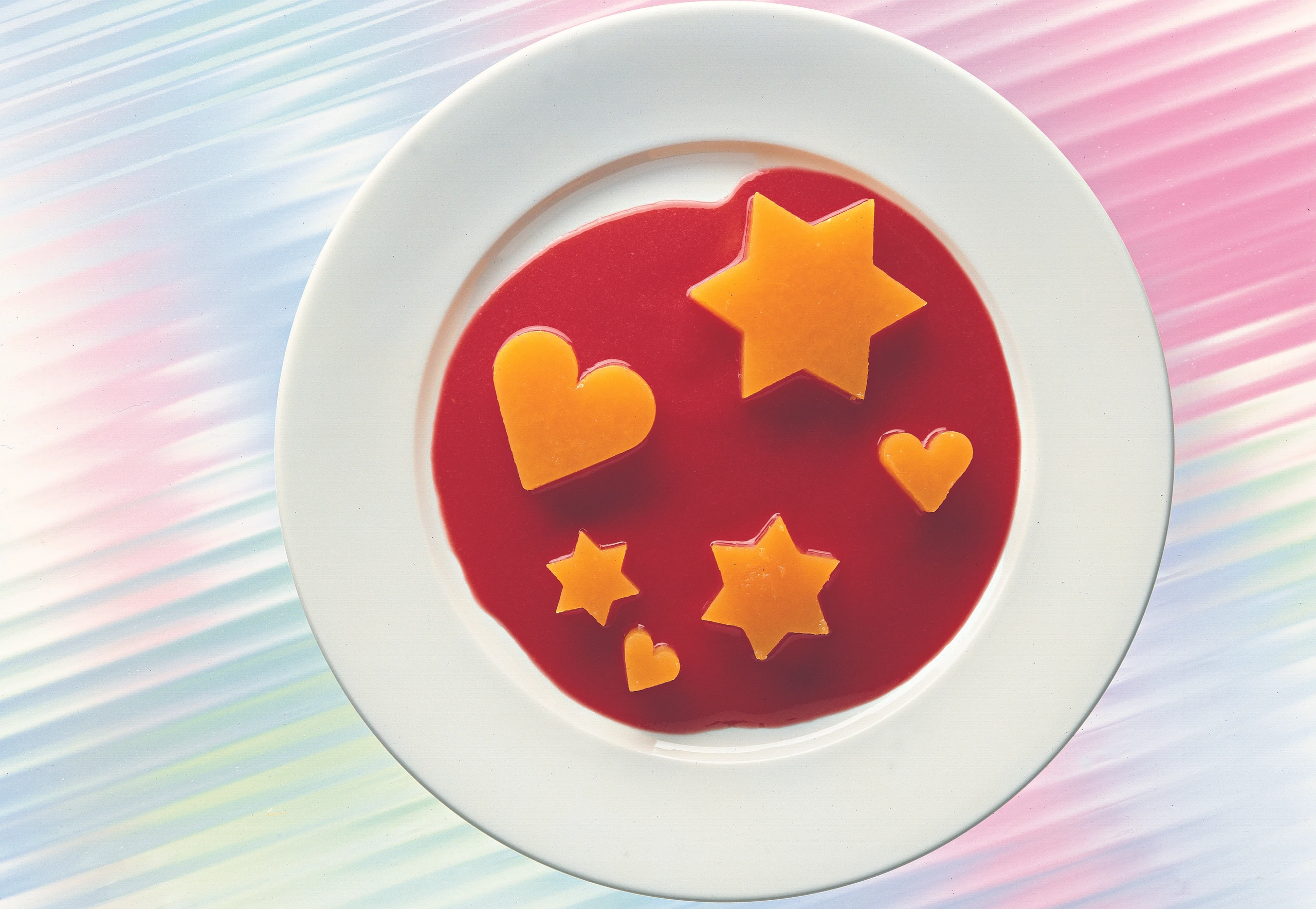 Fruchtgelee-Sterne und Herzen mit feiner Erdbeersauce
