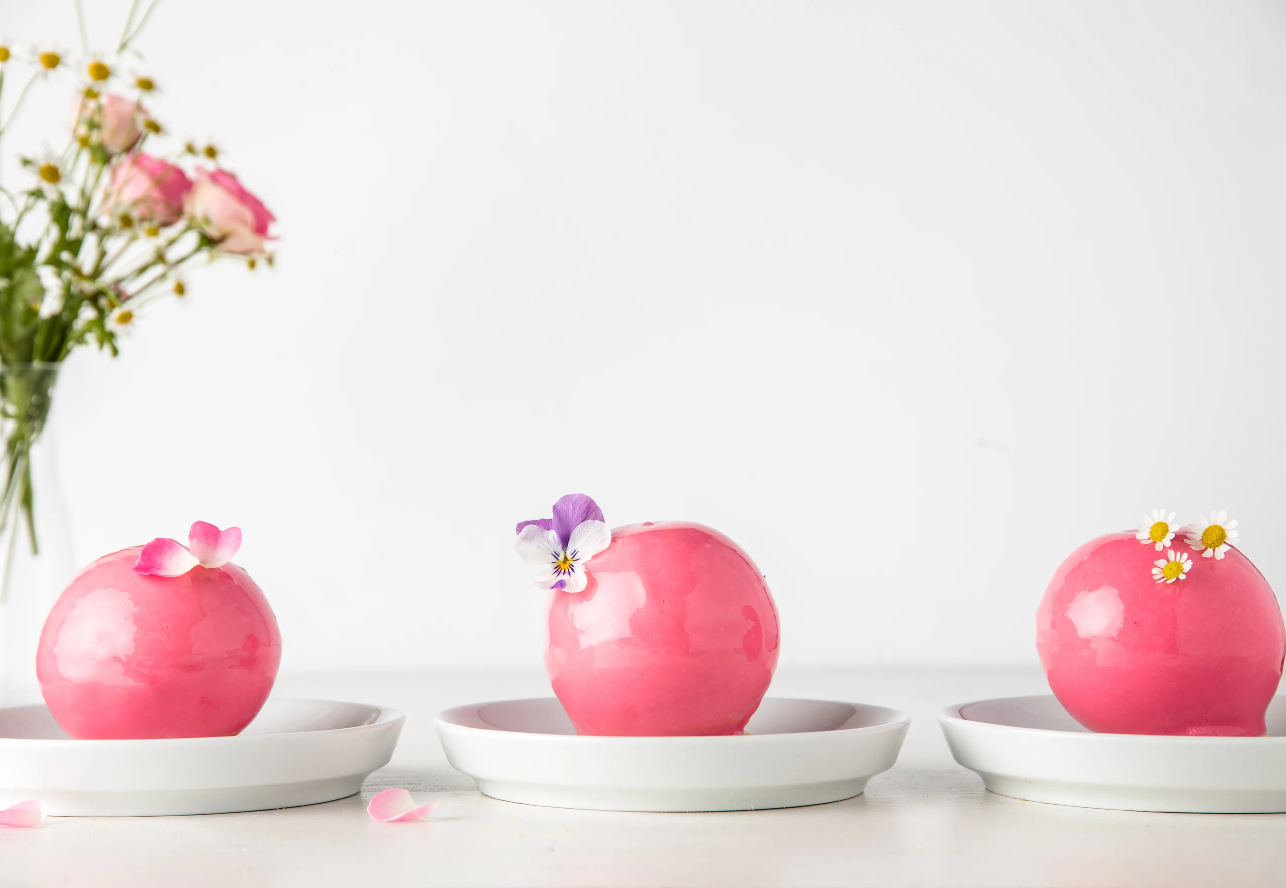 Kugeln nach dem Zusammensetzen vorsichtig aufspießen und in die Glasur tunken. Gut abtropfen lassen und auf je einen Keks setzen. Mit essbaren Blüten dekorieren.