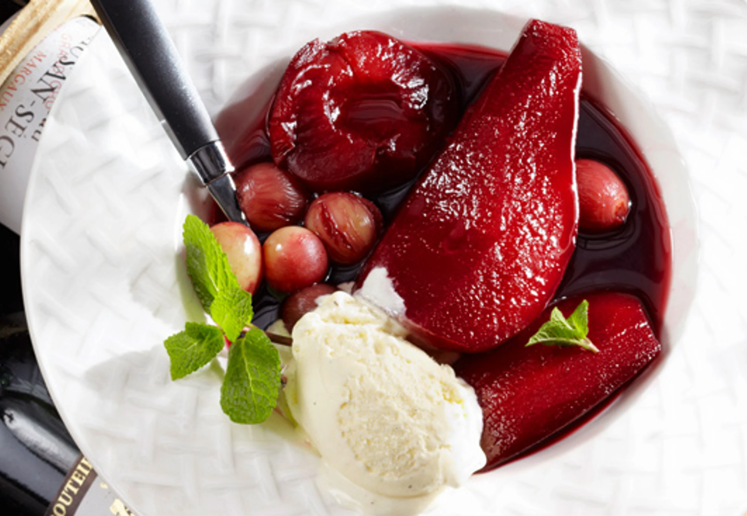 - Äpfel und Birnen herausnehmen und halbieren. Früchte mit der Sauce servieren und mit Minze garnieren. Dazu passt Vanilleeis.