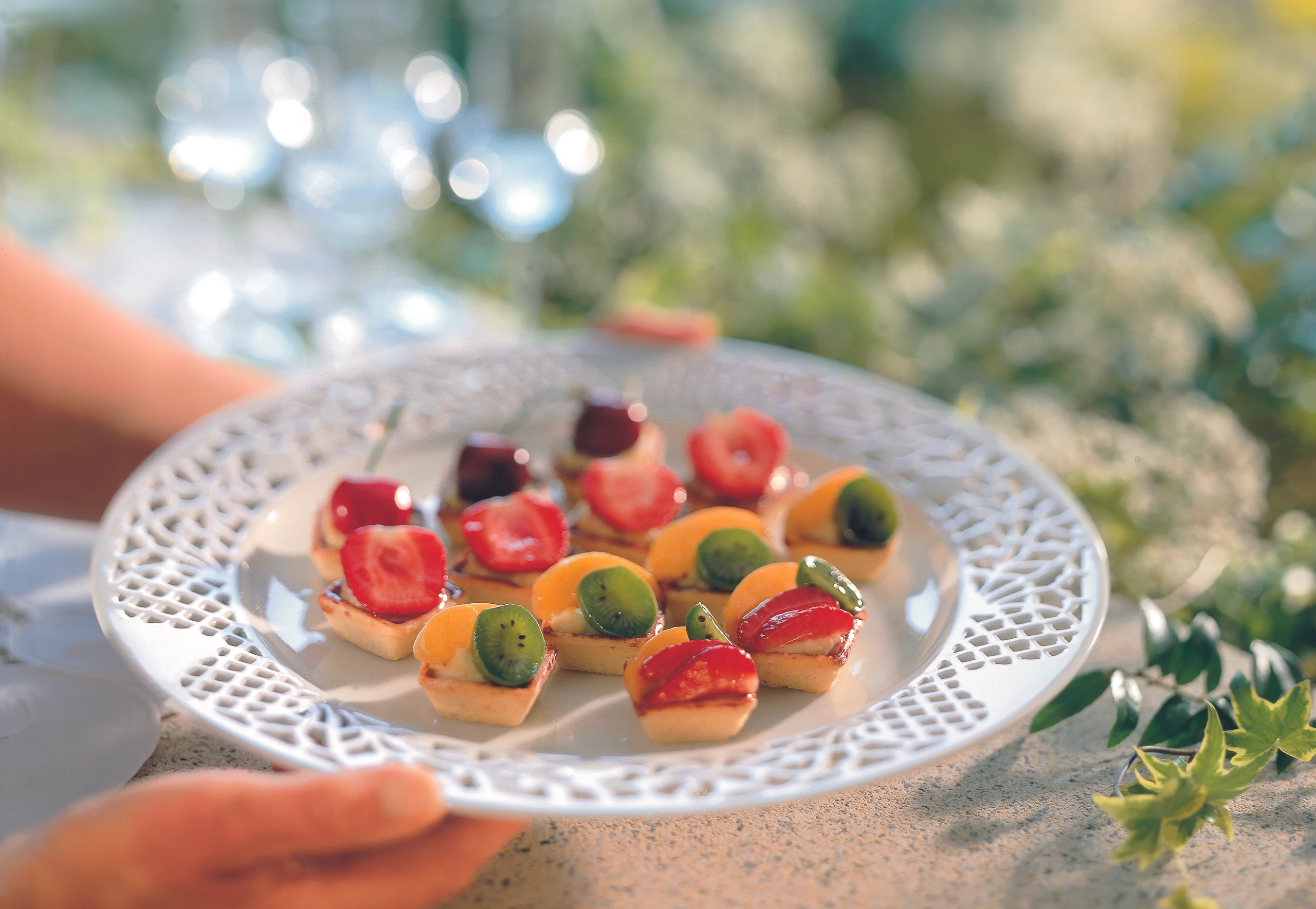 Früchte waschen und trockentupfen, nach Bedarf schälen und entkernen. Früchte nach Belieben in Spalten oder Scheiben schneiden. Tartelettes mit Pudding füllen und mit den Früchten belegen.