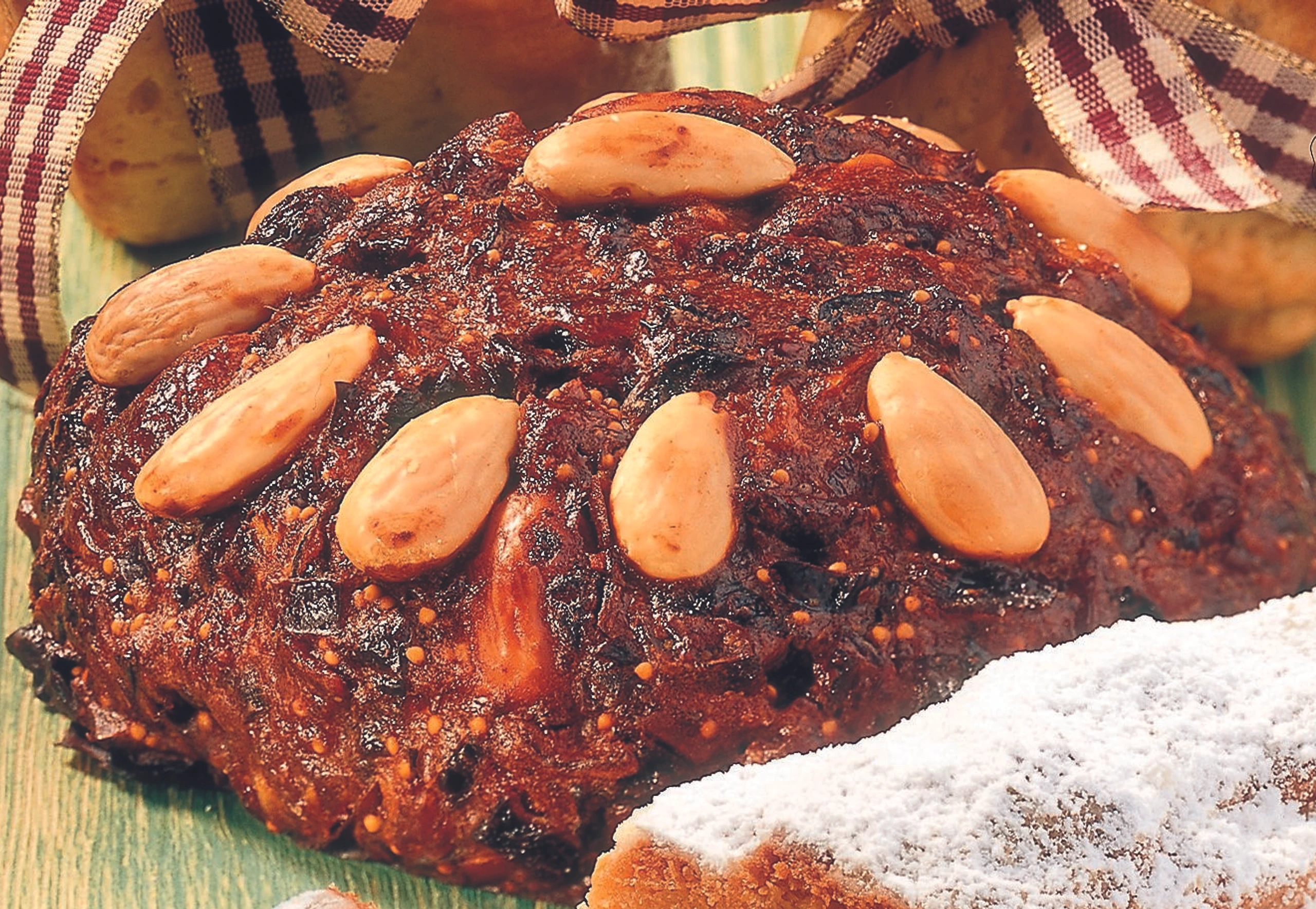 Laibe auf ein mit Backpapier belegtes Blech legen, mit Ei bestreichen und mit Mandeln belegen. Brote im Rohr (mittlere Schiene) ca. 45 Minuten backen. Herausnehmen und abkühlen lassen.