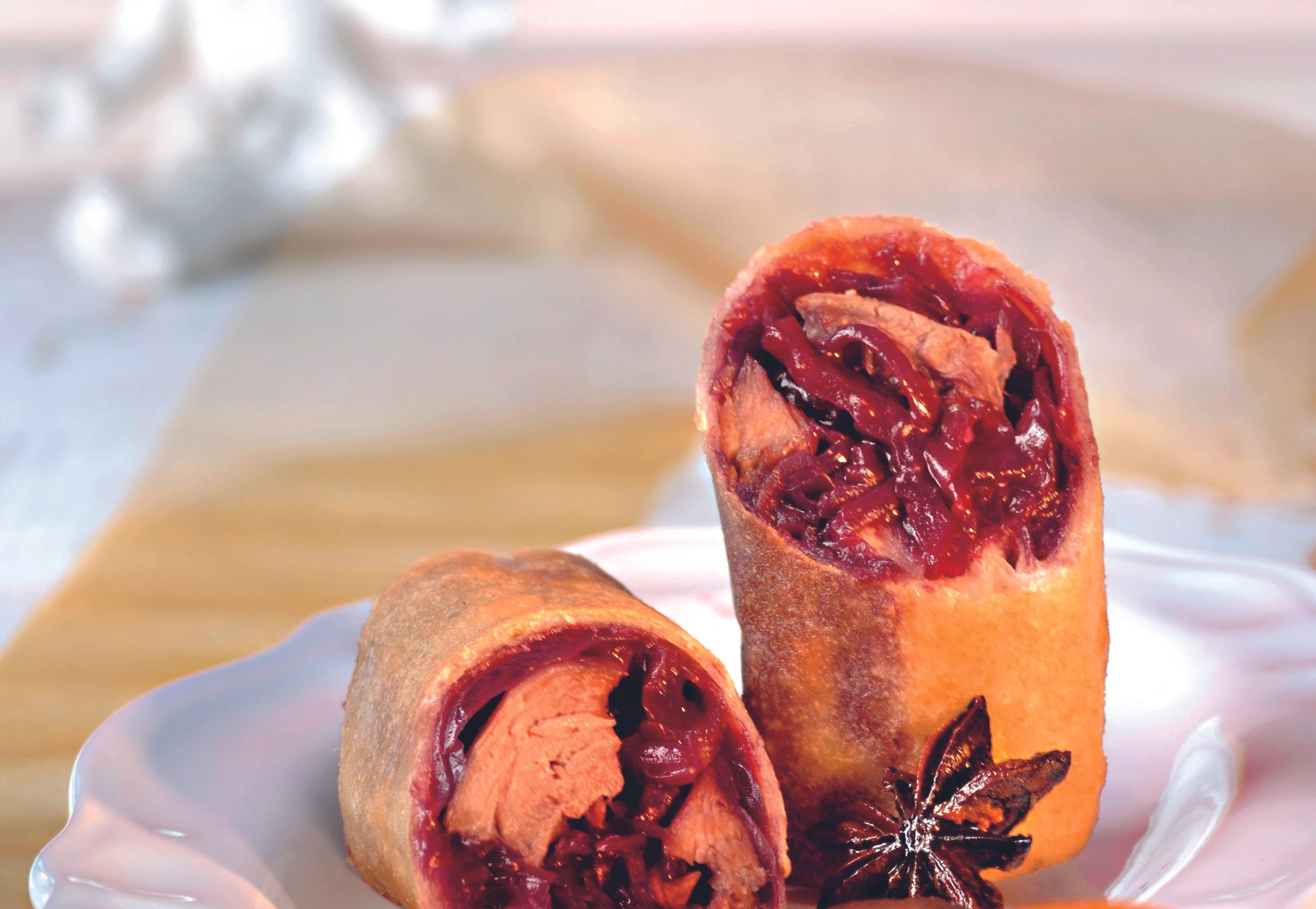 Rohr auf 200°C vorheizen. Gänsekeulen salzen, pfeffern, in einen Bräter legen, mit dem Fond untergießen, Sternanis zugeben. Keulen ca. 1 Stunde braten.