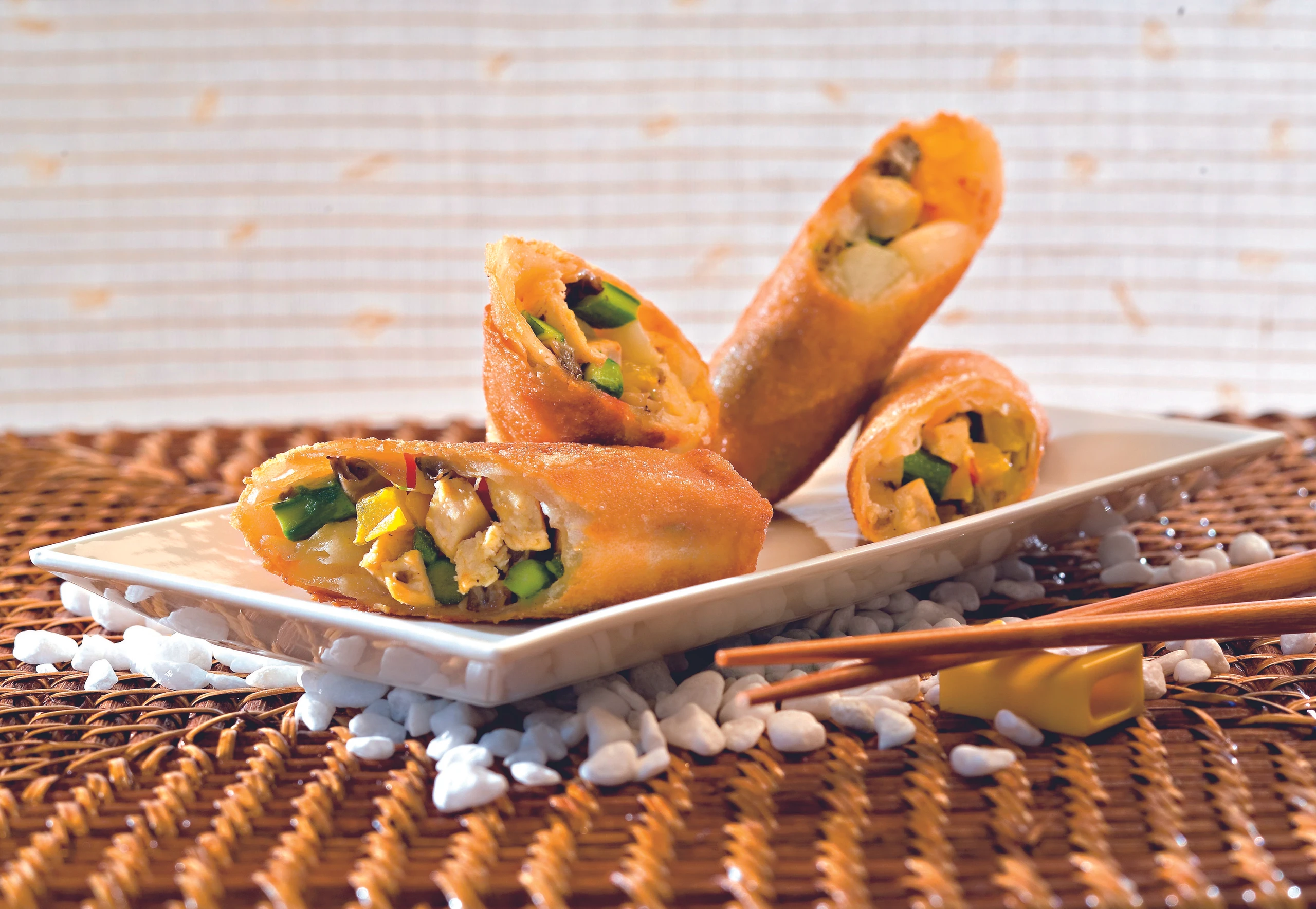 Frühlingsrollen mit Spargel, Huhn und Pilzen