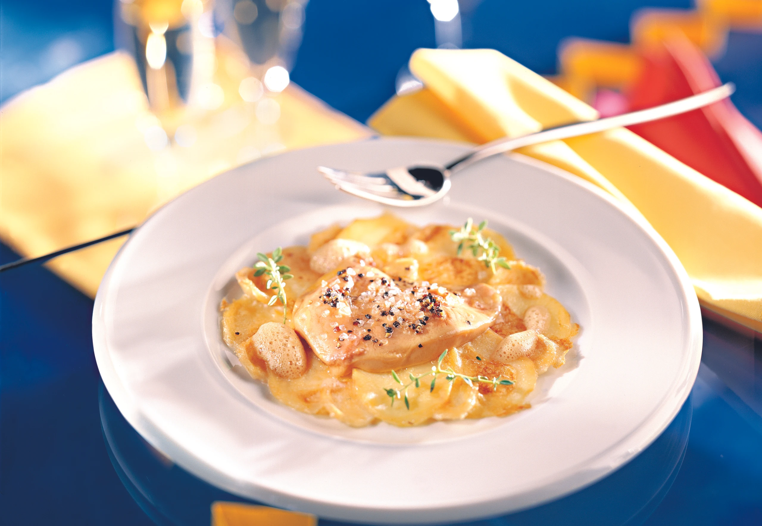 Gänseleber auf Gemüsegratin