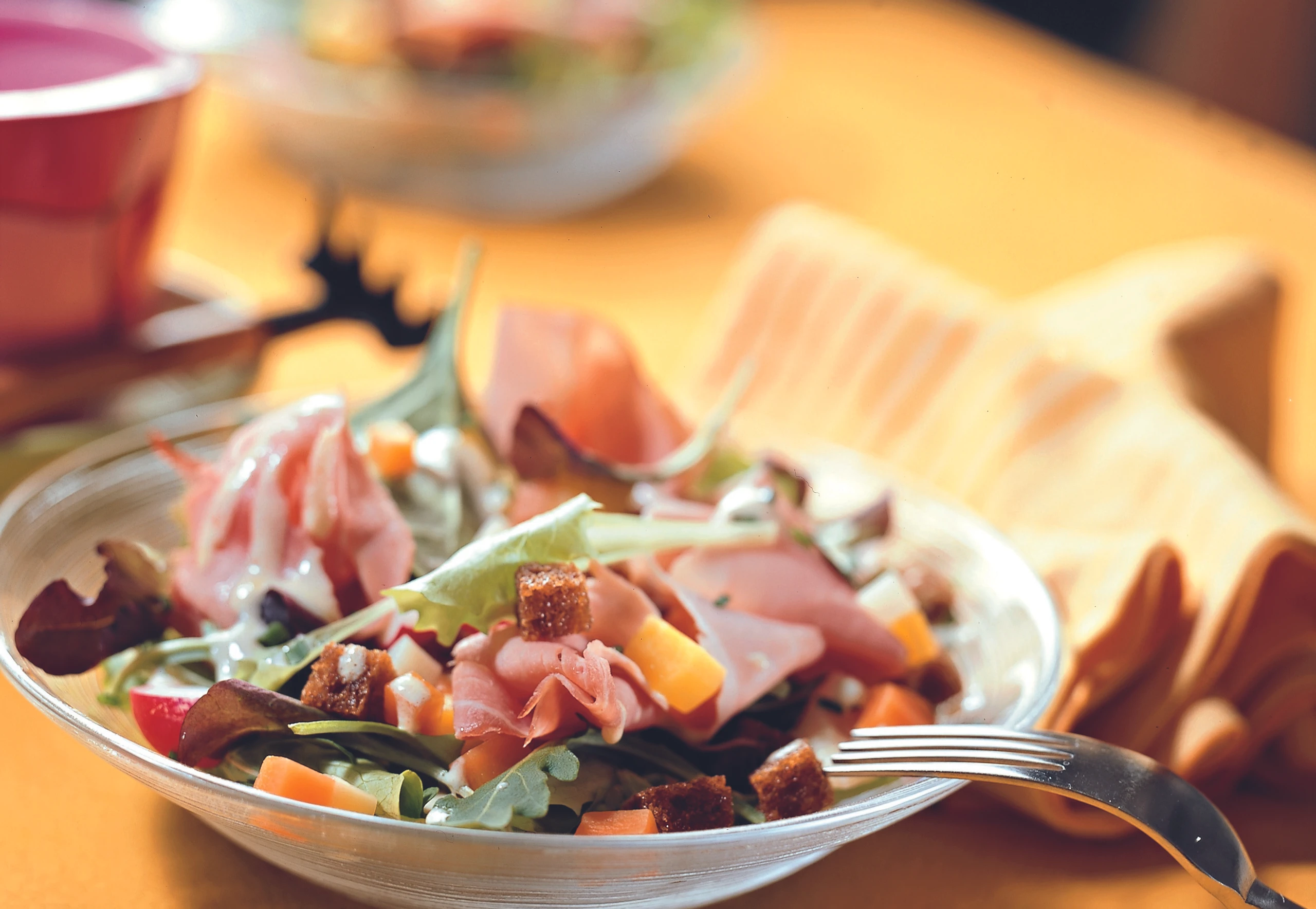 Gärtnersalat mit Schinken und Senf-Jogurtdressing