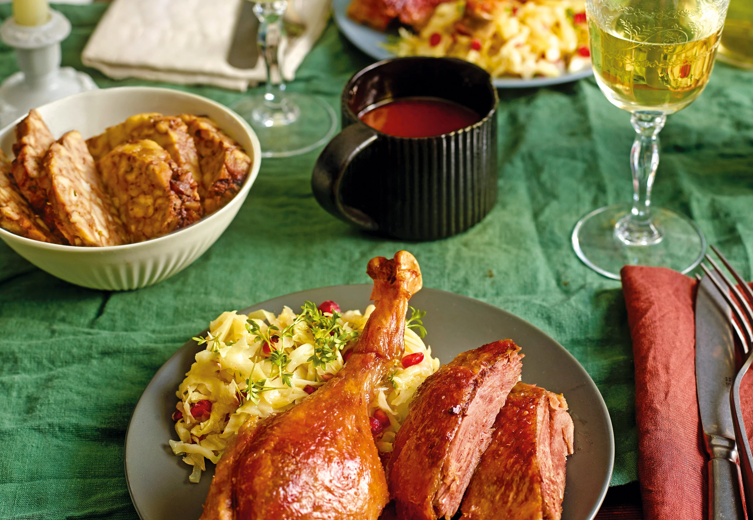 Gansl mit Laugengebäckfülle und Weinkraut