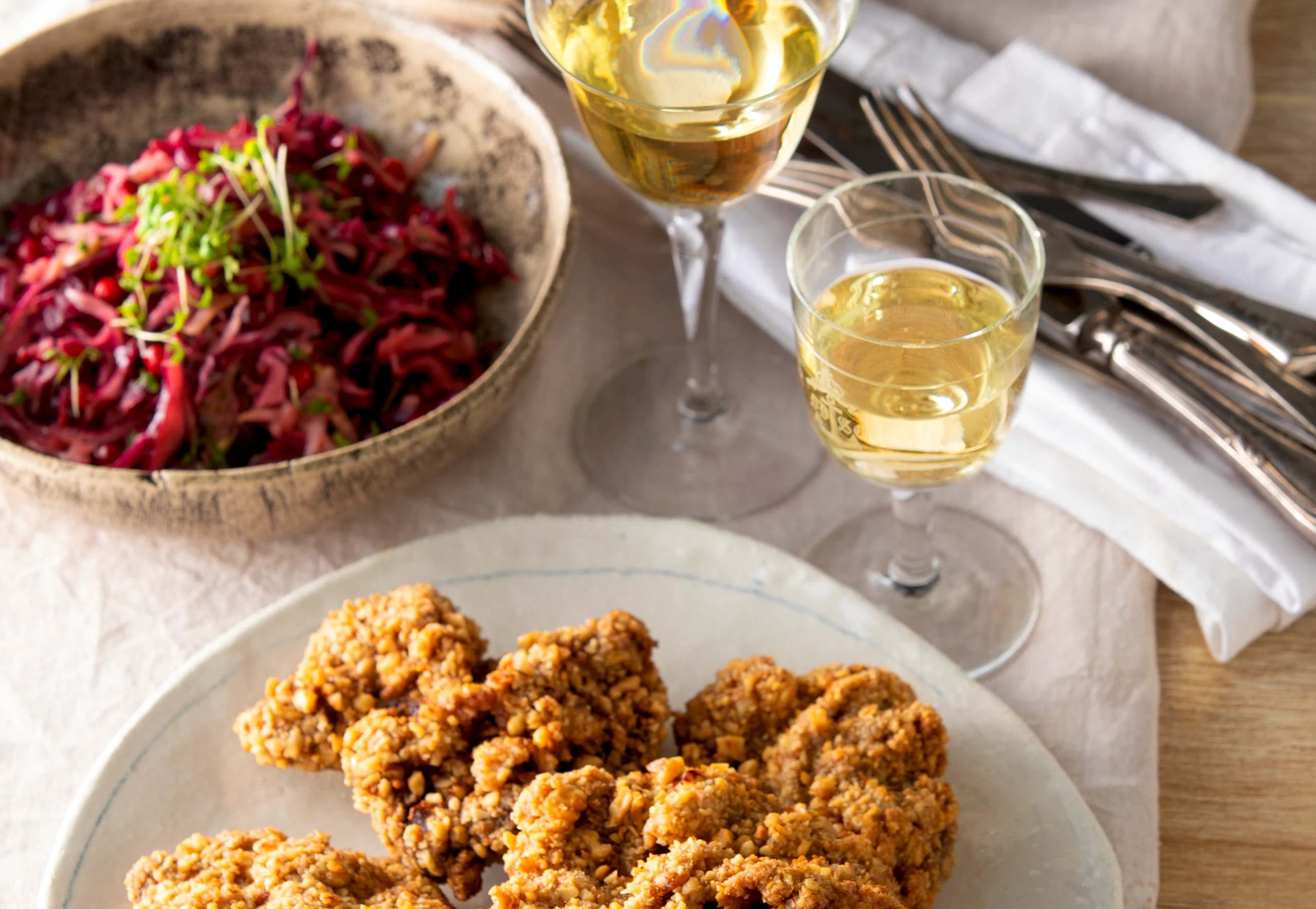 Ganslschnitzel in der Nusskruste mit Rotkrautsalat