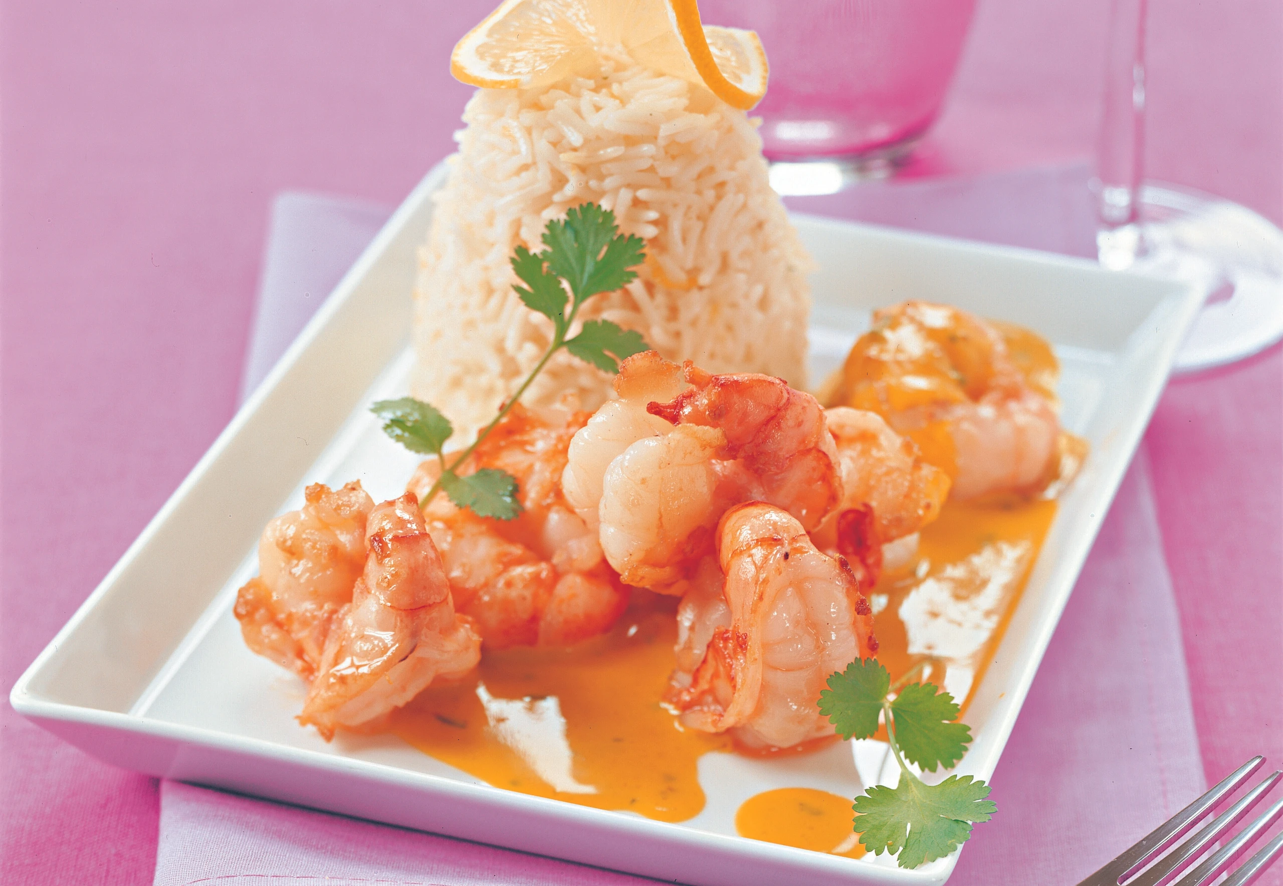Garnelen in die Sauce legen, kurz ziehen lassen. Curry mit Basmatireis servieren.
