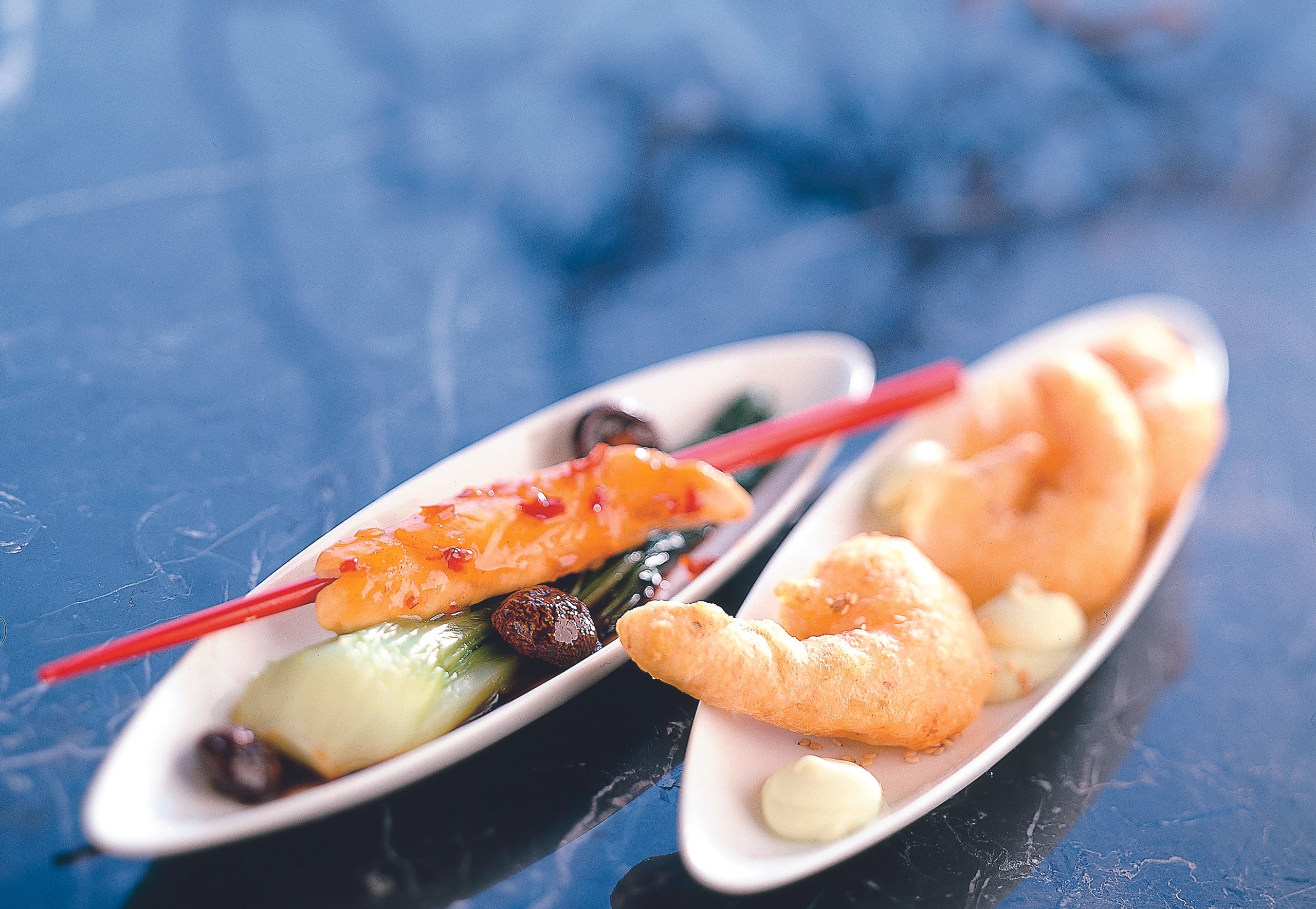 Garnelen in den Teig tauchen und im heißen Öl knusprig goldbraun backen. Herausnehmen und auf Küchenpapier abtropfen lassen.