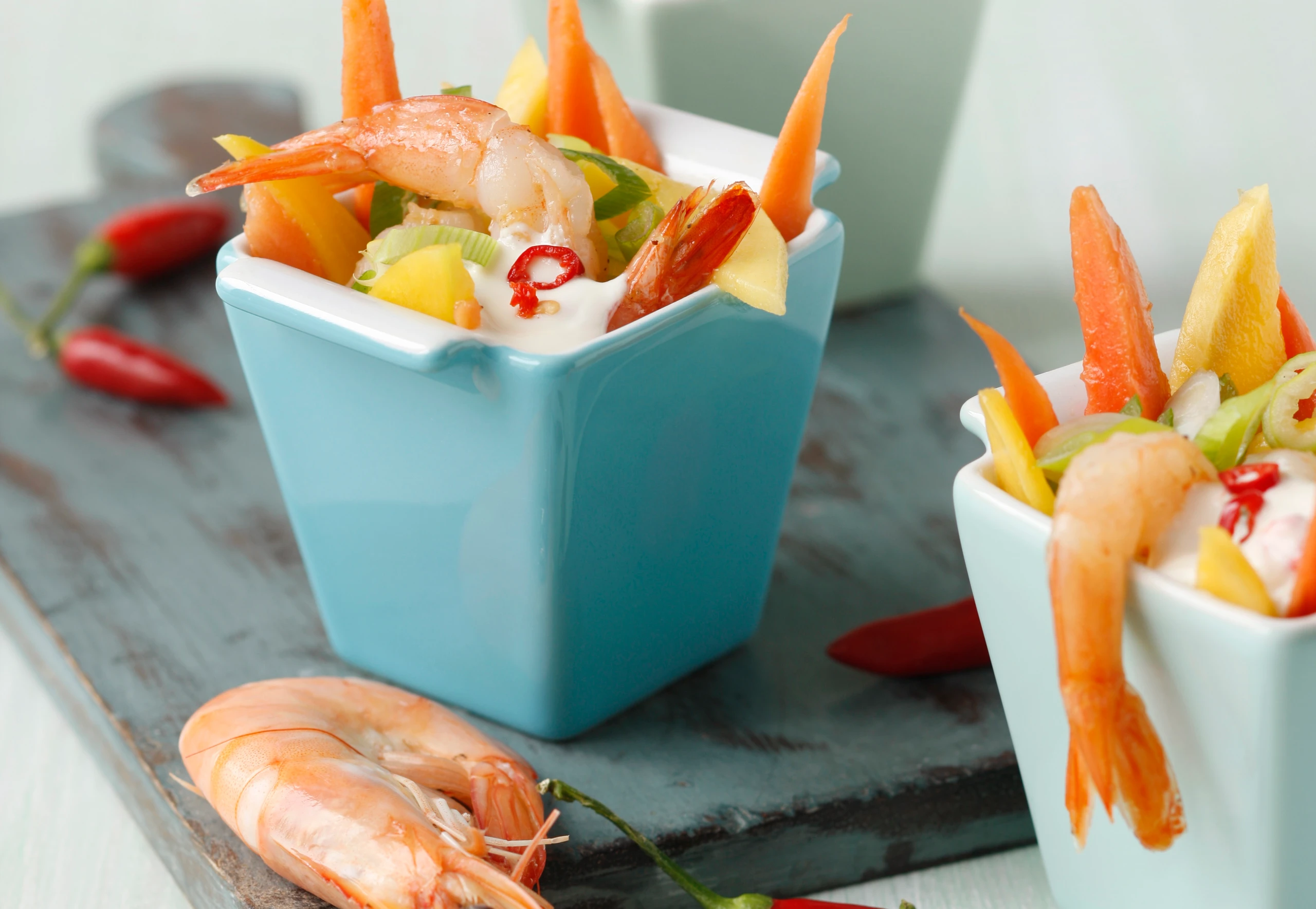 Garnelen-Mango-Papaya-Salat mit Chilidressing