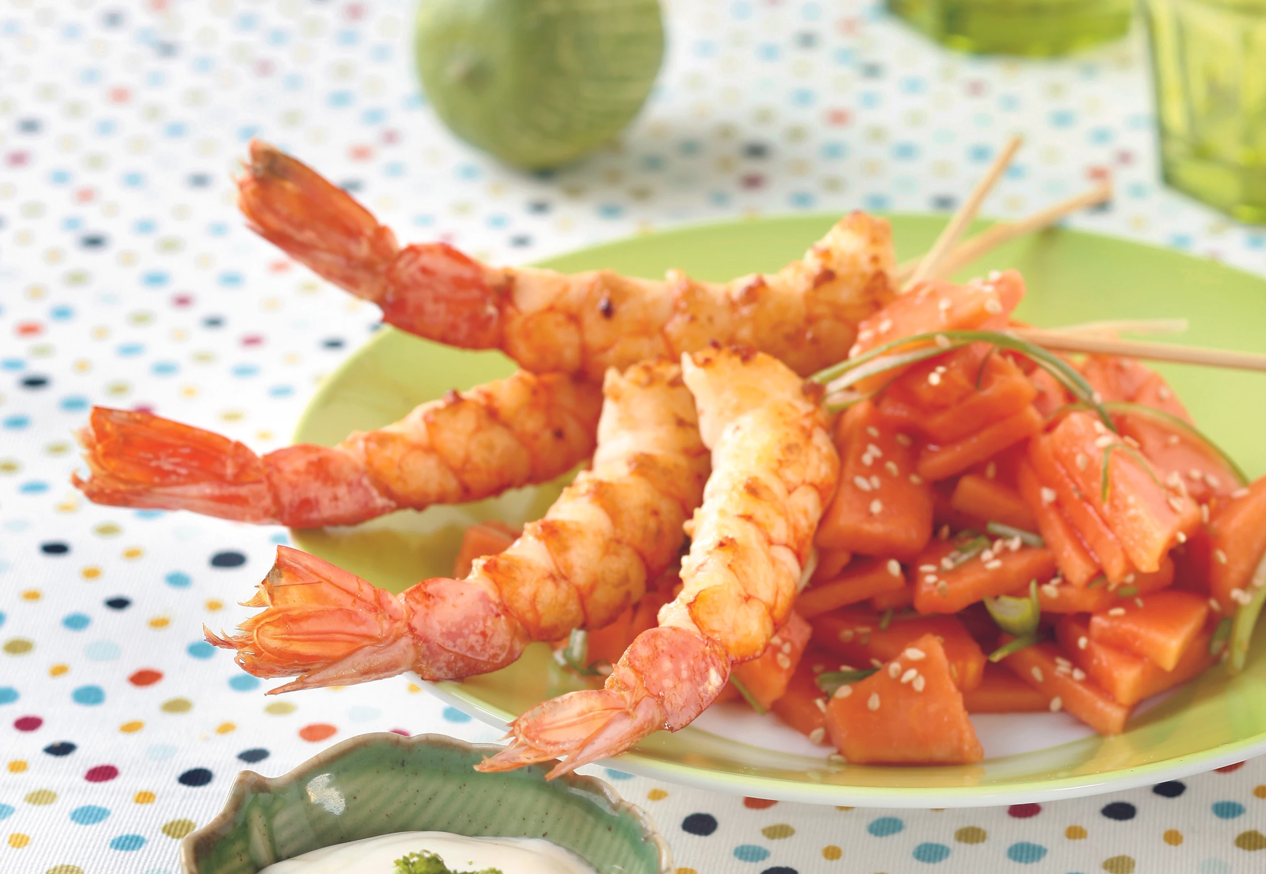 Garnelen-Spiesse mit Limettendip