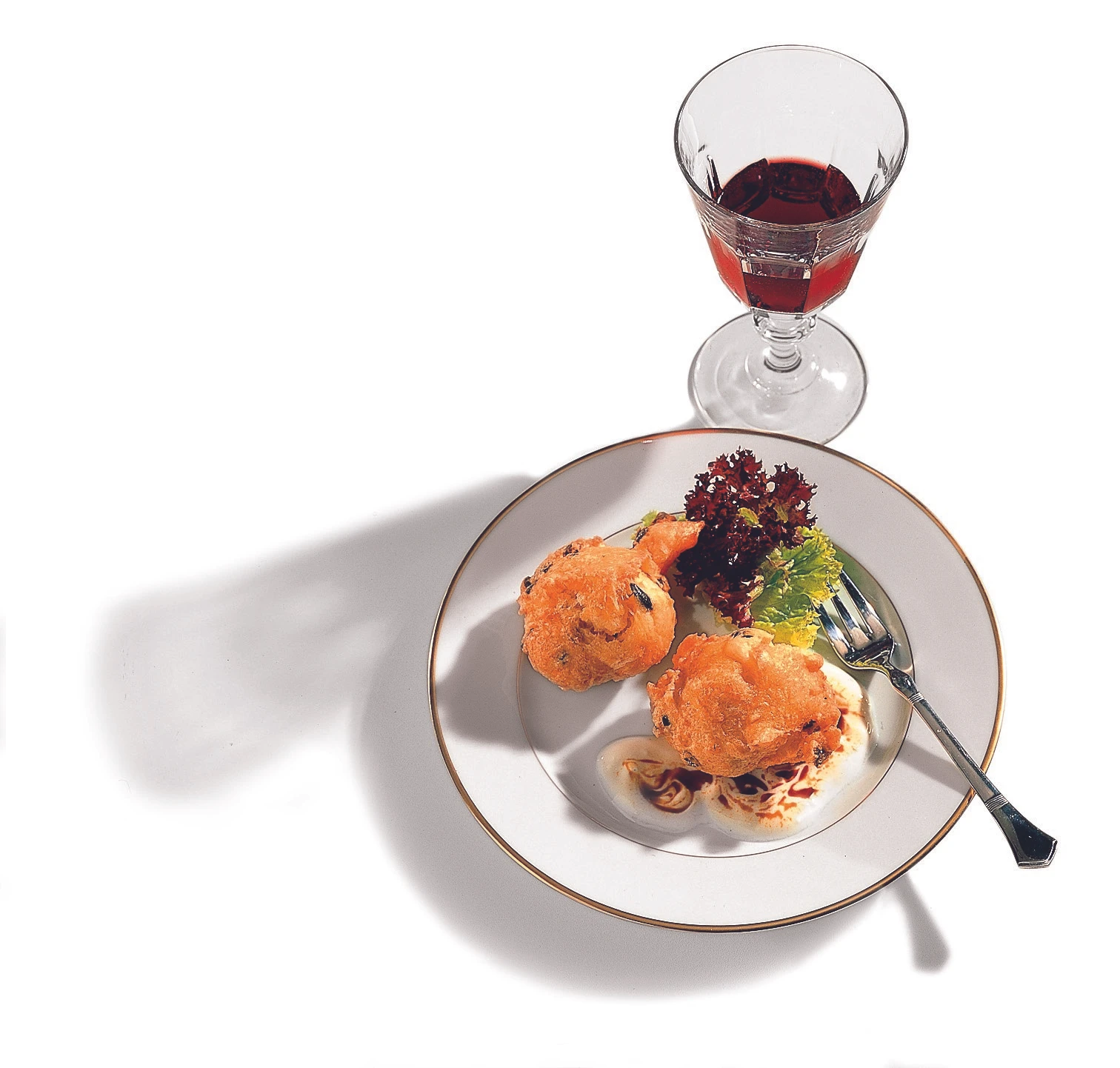 Ca. 3 Finger hoch Öl erhitzen. Aus dem Teig 8 gleich große Bällchen formen, im heißen Öl goldgelb backen, mit einem Siebschöpfer herausheben und auf Küchenpapier gut abtropfen lassen.