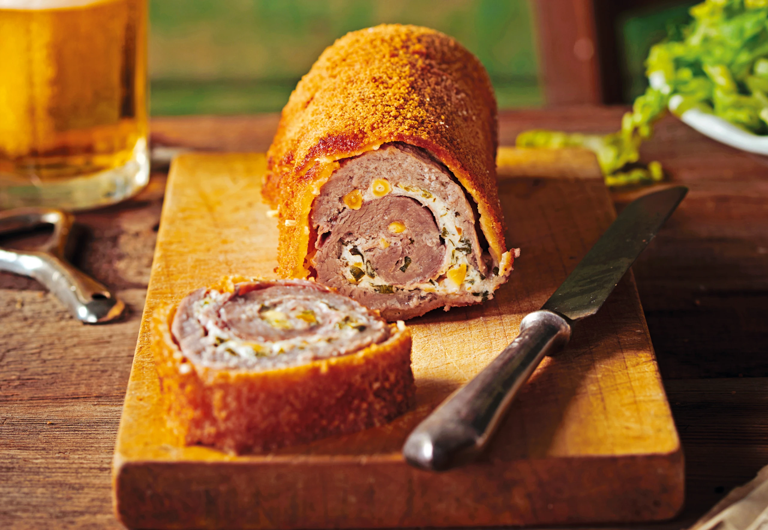 Gebackene Kalbsroulade mit Ziegenfrischkäse und Prosciutto