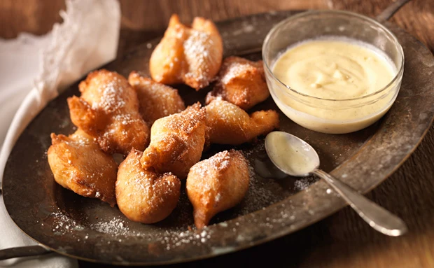 - Mäuse mit einem Gitterlöffel aus dem Öl heben, gut abtropfen lassen und auf Küchenpapier trockentupfen. Mäuse mit der Vanillesauce anrichten und mit Zucker bestreut servieren.